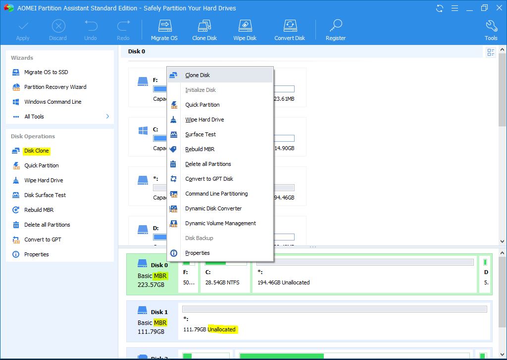 Clonare cu AOMEI migrare disk-to-disk pentru pcbios sau uefi cms mode: