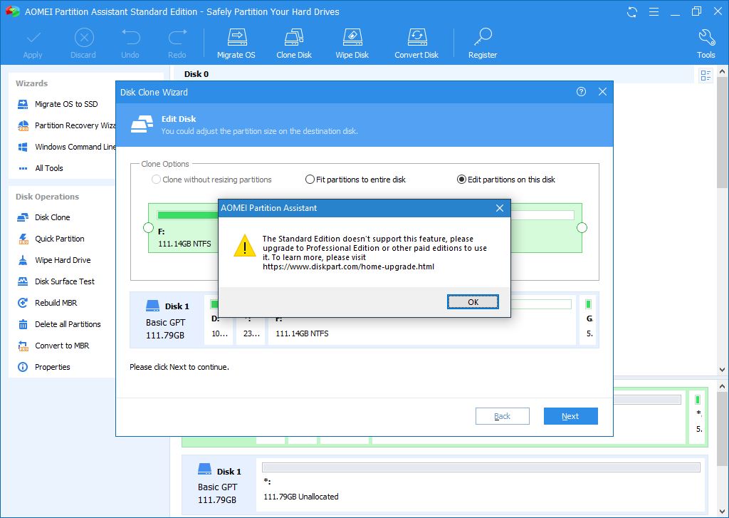 Versiunea free permite clonare atat intre partitii cat si intre discuri pentru pcbios