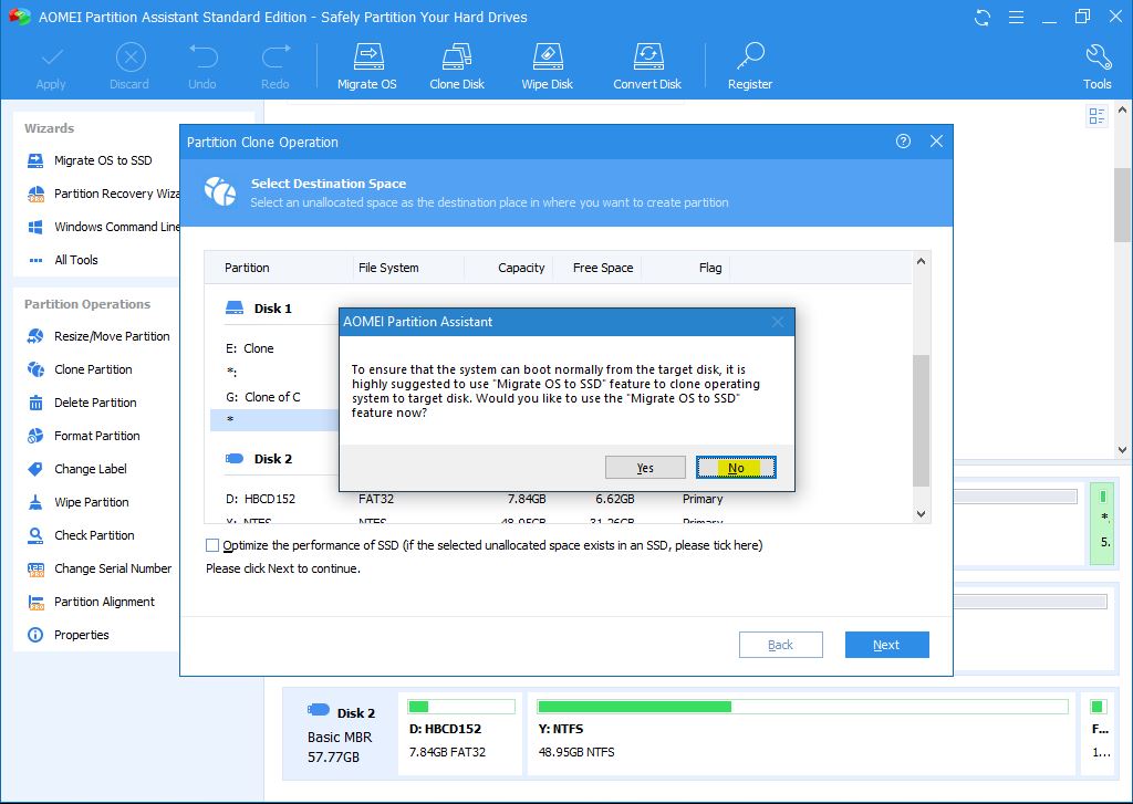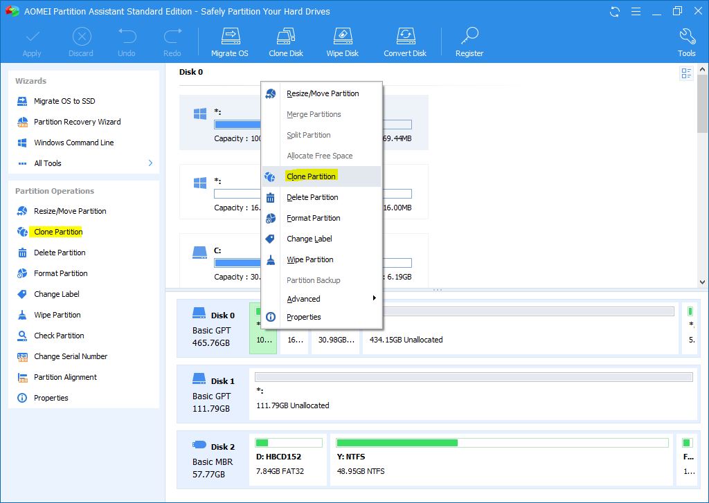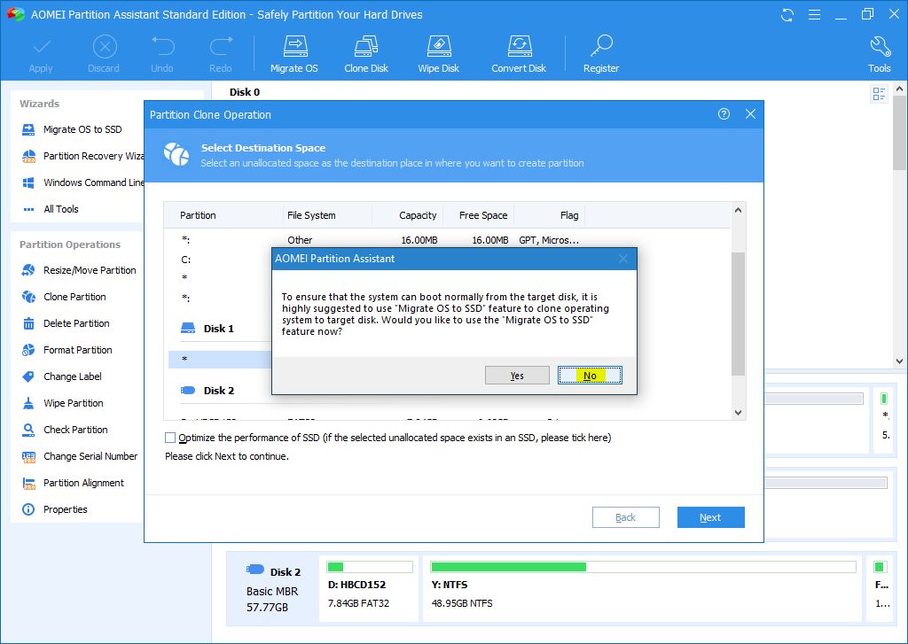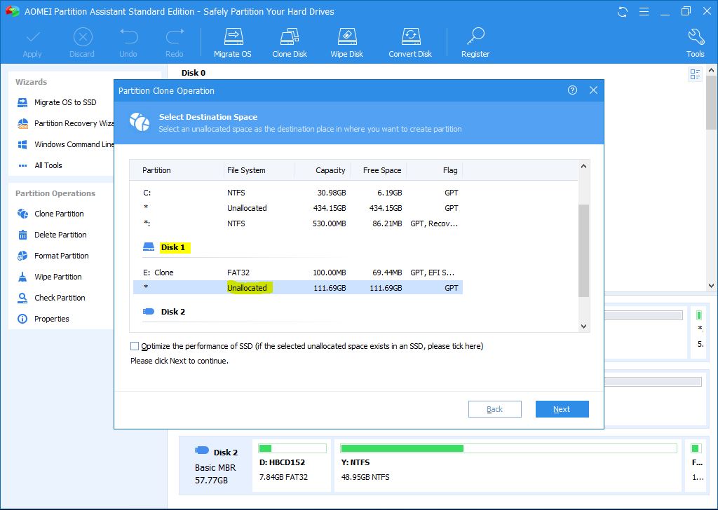 Clonare cu AOMEI migrare part-to-part pentru uefi:
