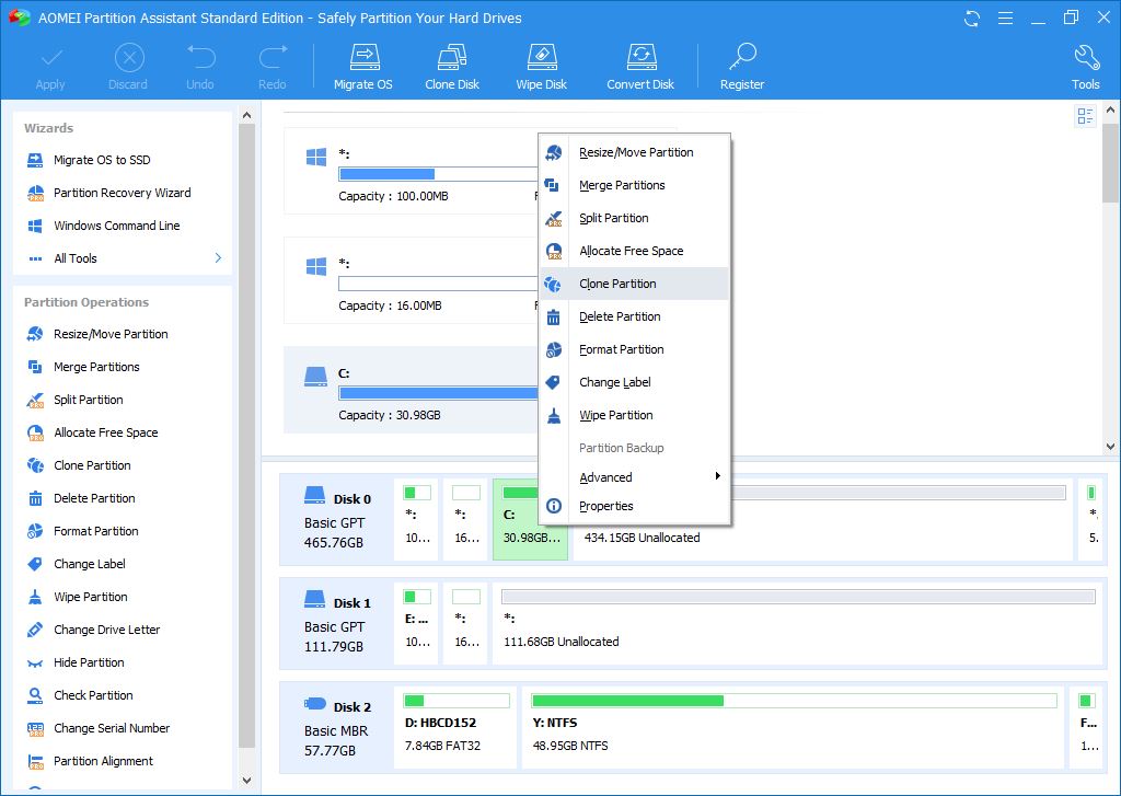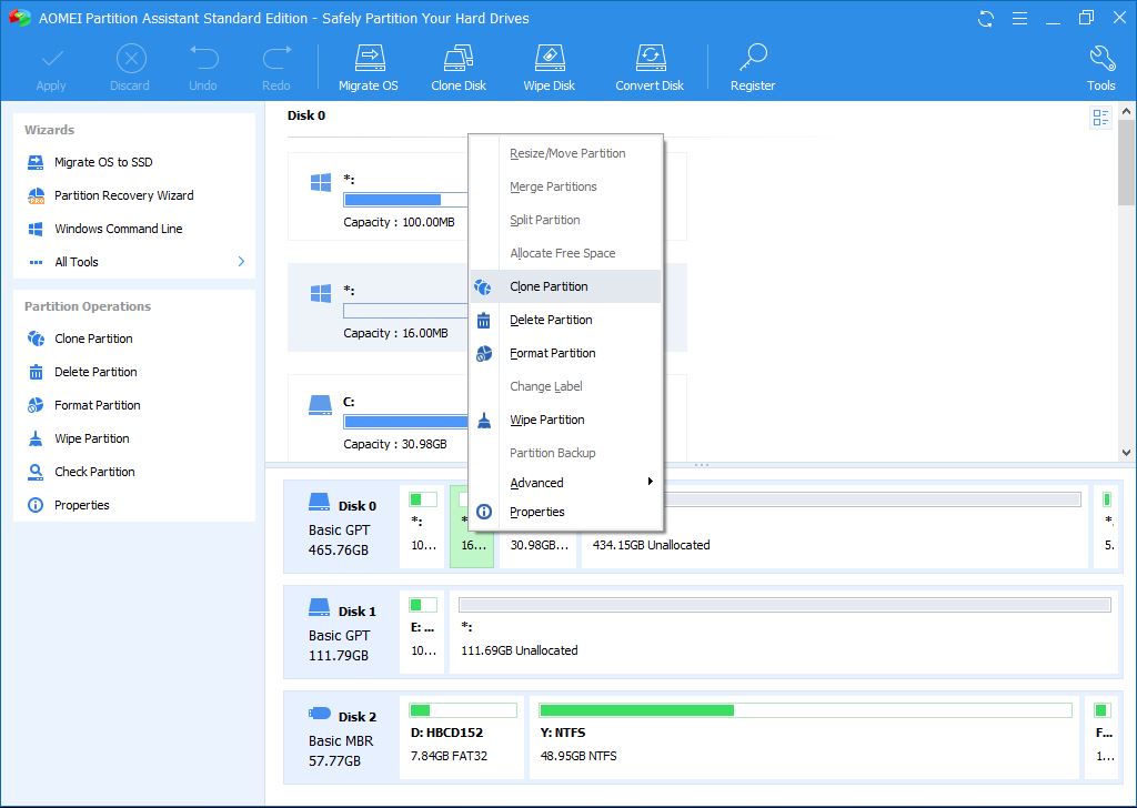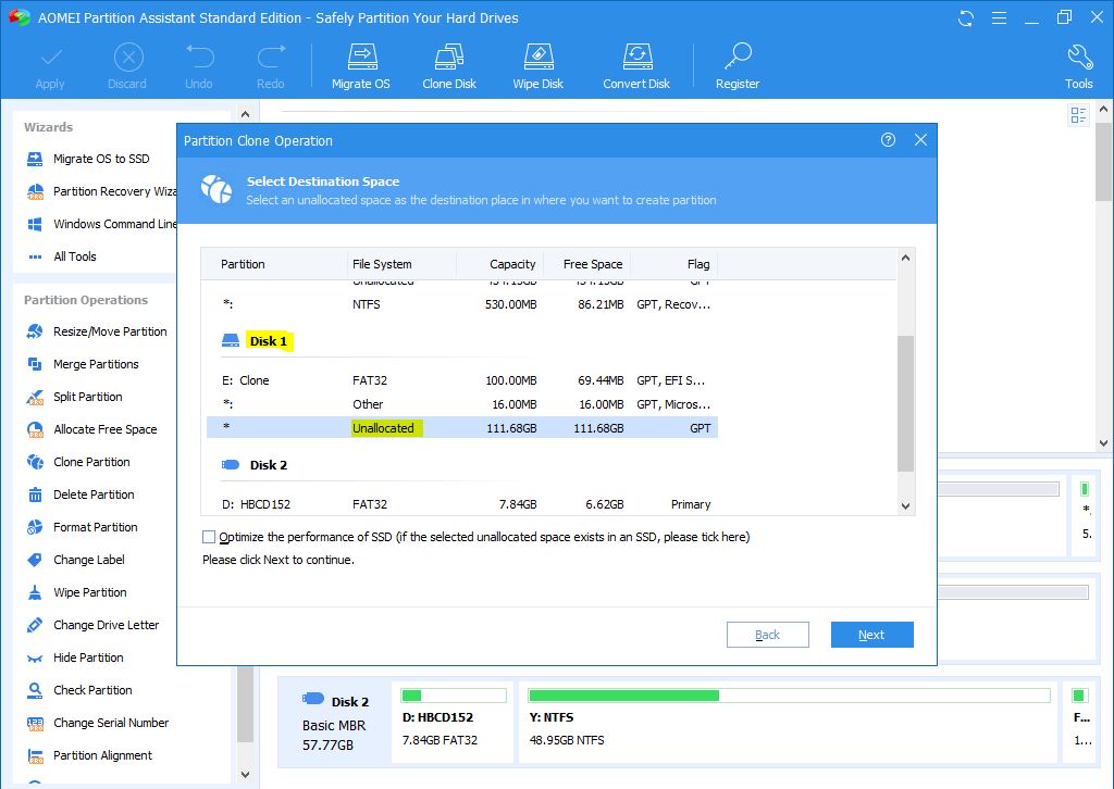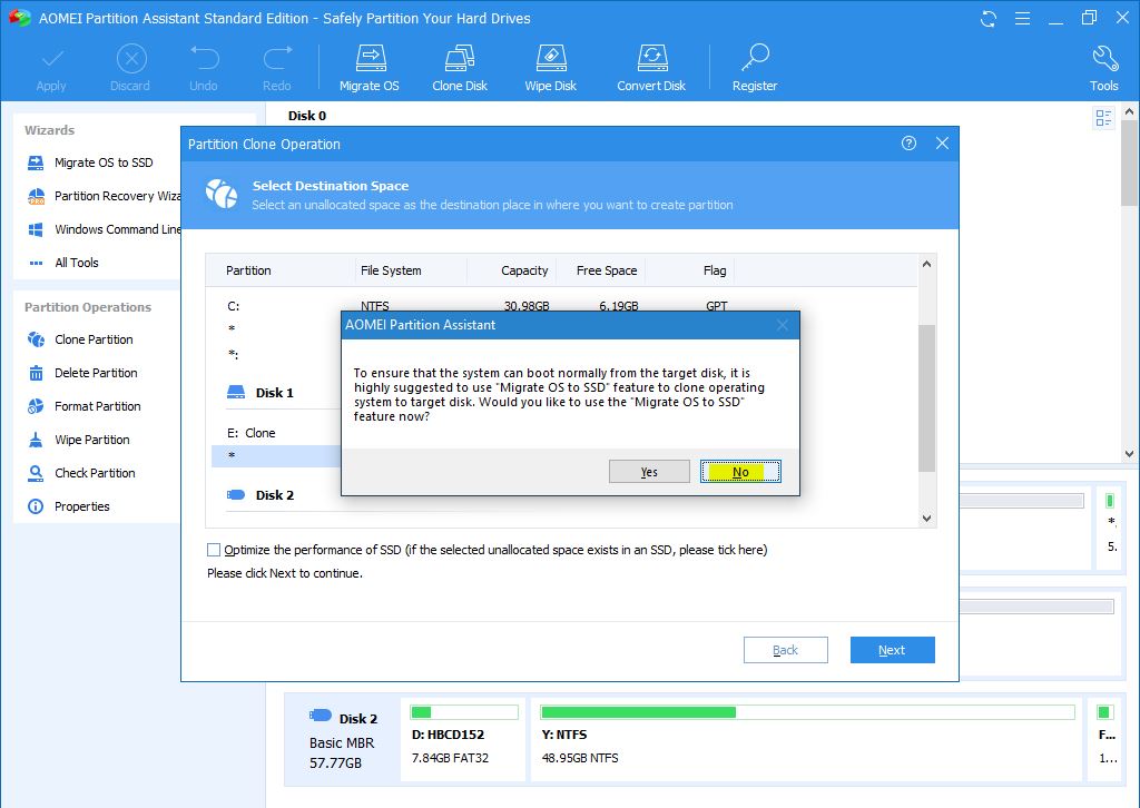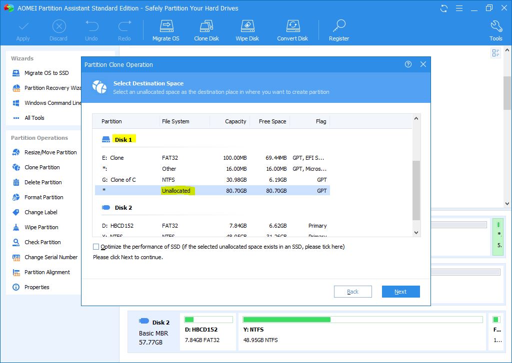Clonare cu AOMEI migrare part-to-part pentru uefi: