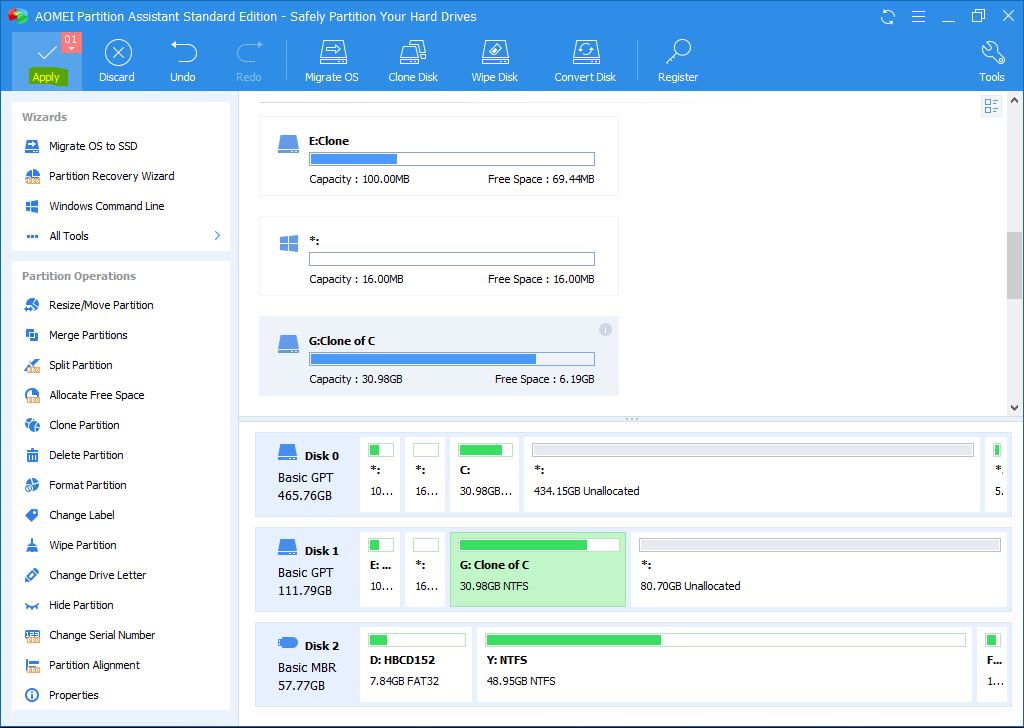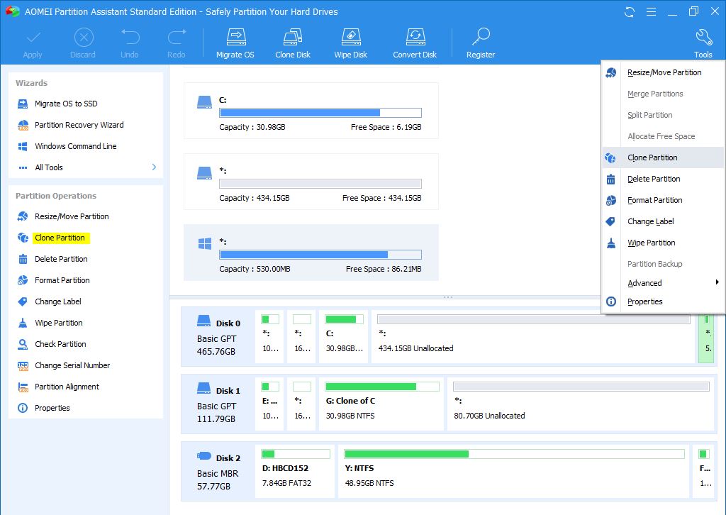 Ajustare: dupa clonare se sterg label-urile Clone of ale partitiilor si se repara BCD-urile