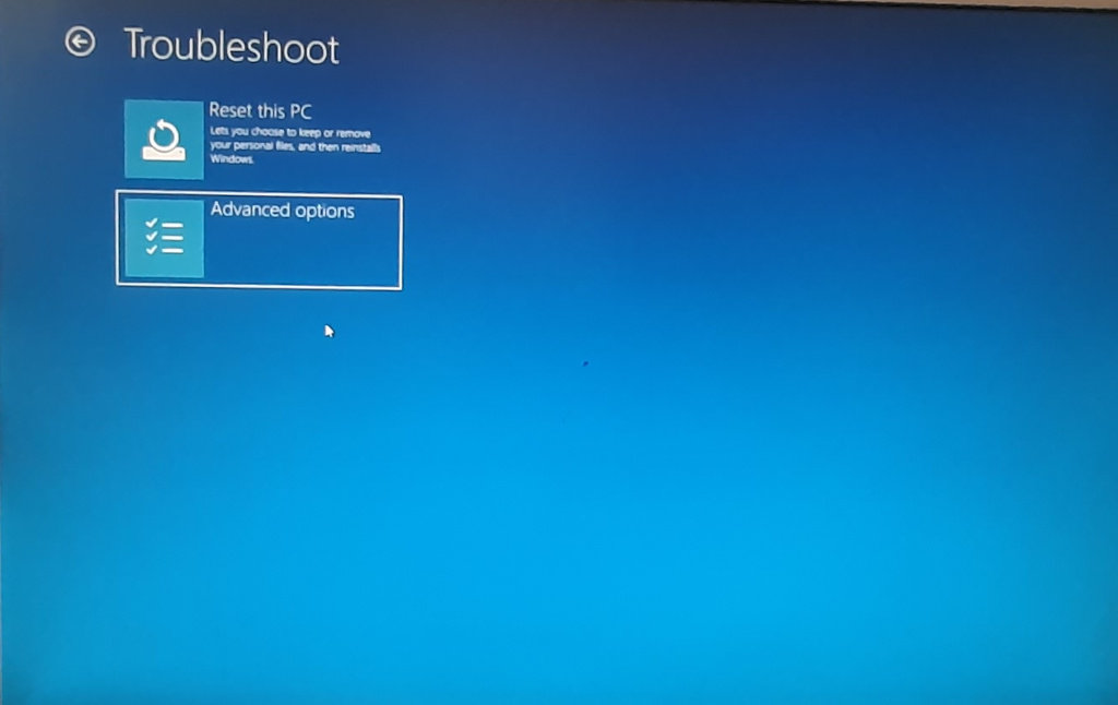 cu corectiile facute se poate intra in recovery, cel mai simplu Start->Power->Restart cu Shift apasat