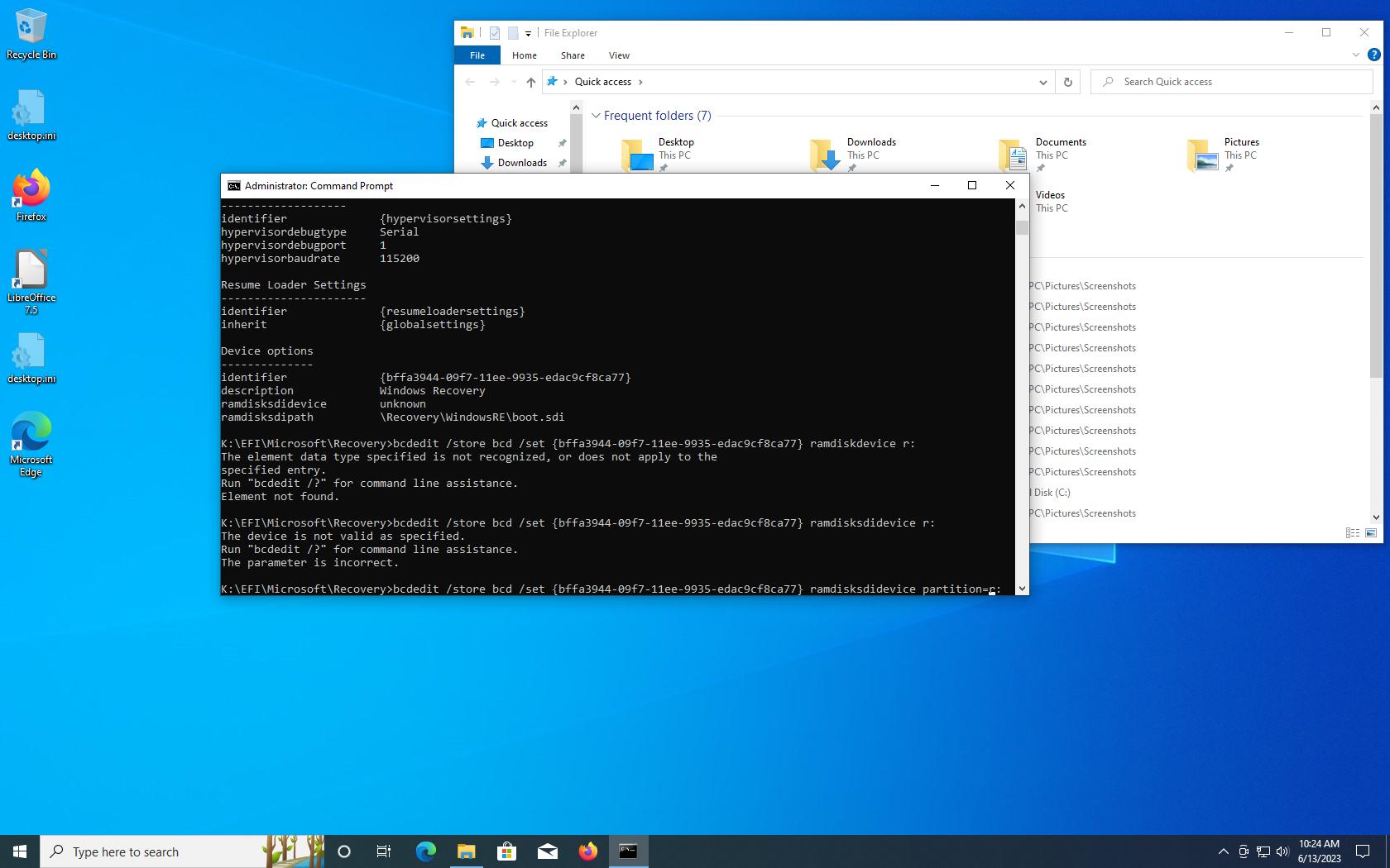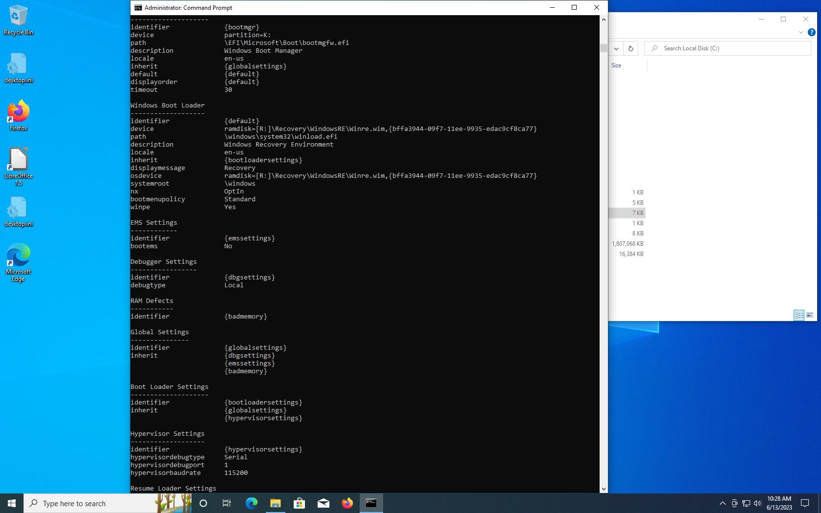 Varianta din cmd.exe cu bcdedit.exe, deja sunt asignate litere la partitiile hidden