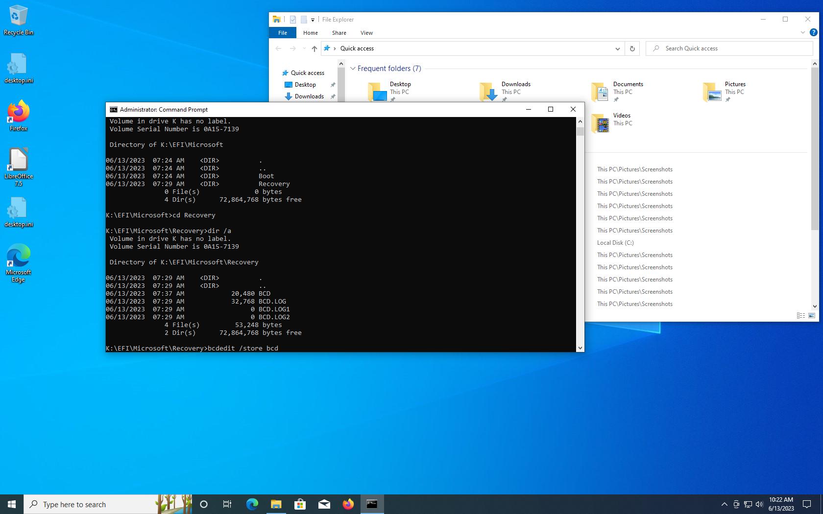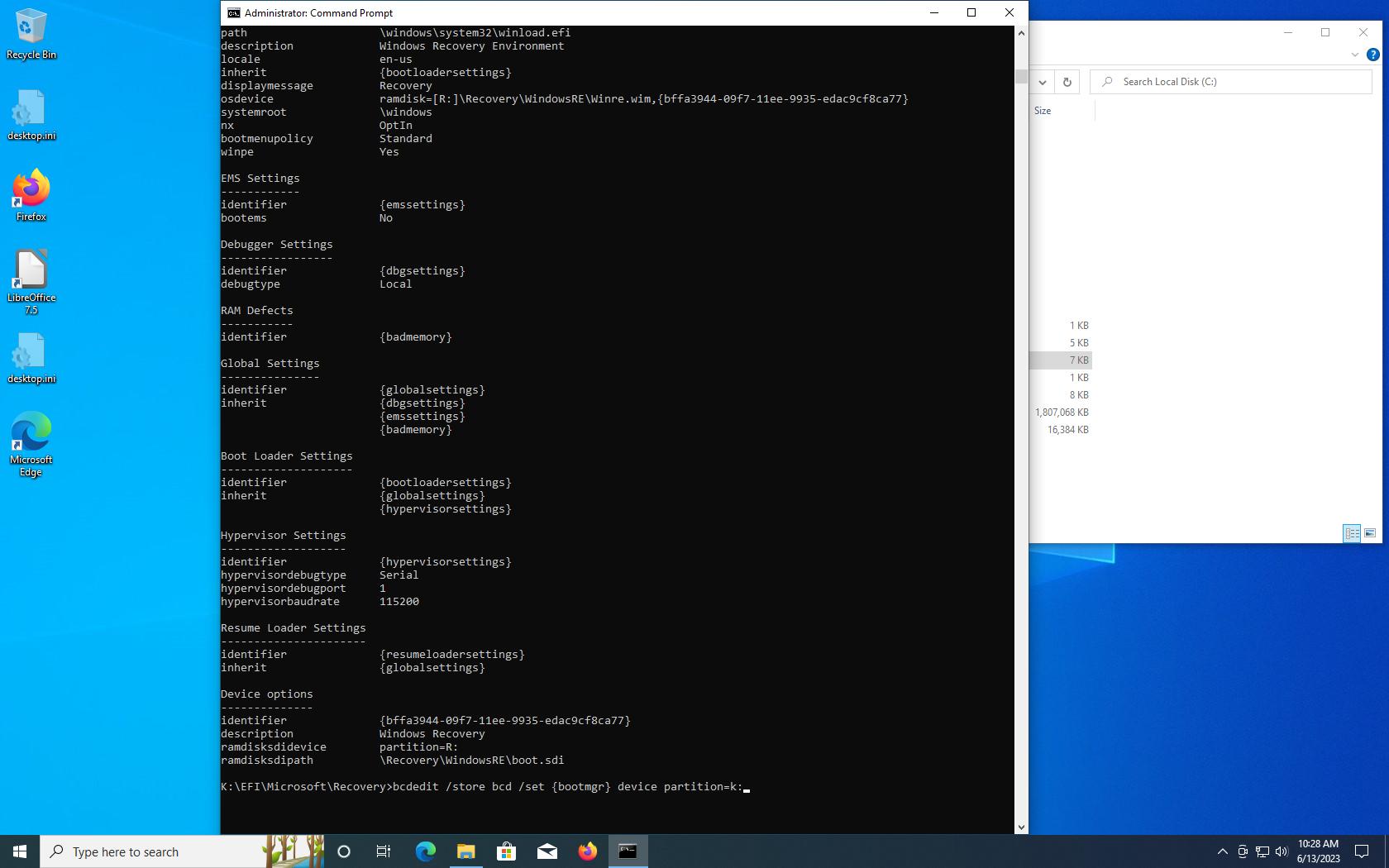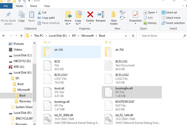 #k: && cd k:\EFI\Boot\Microsoft\Recovery