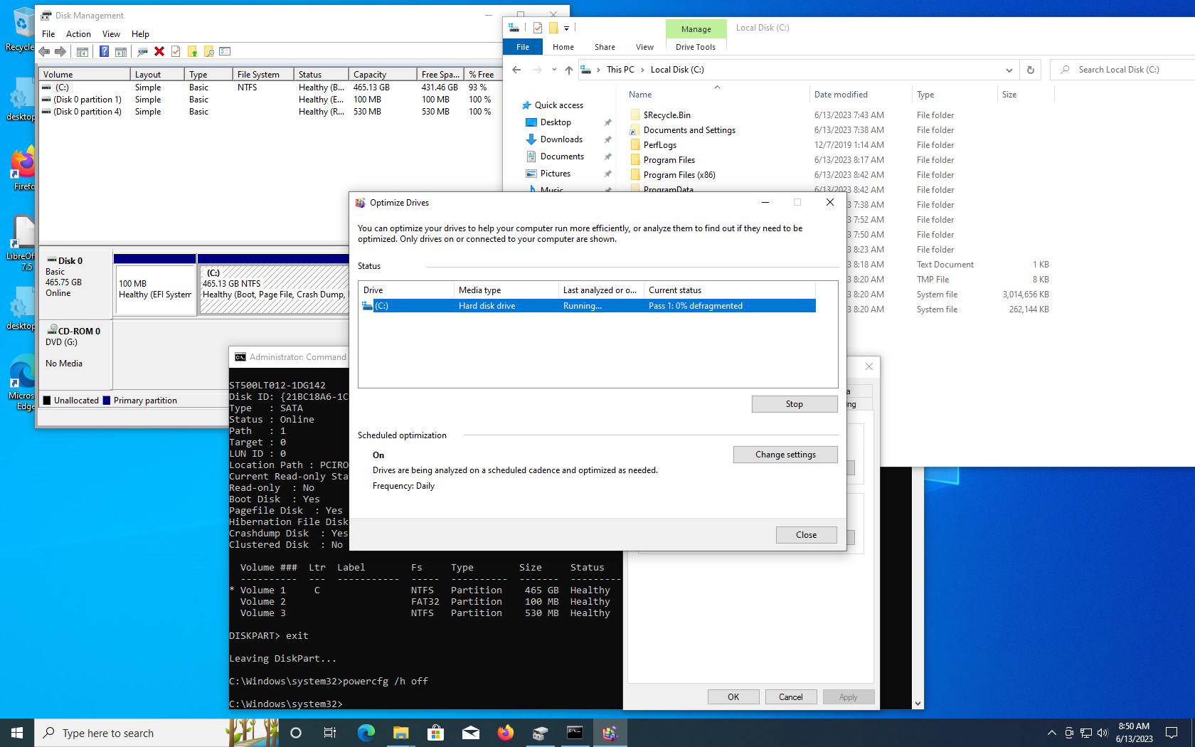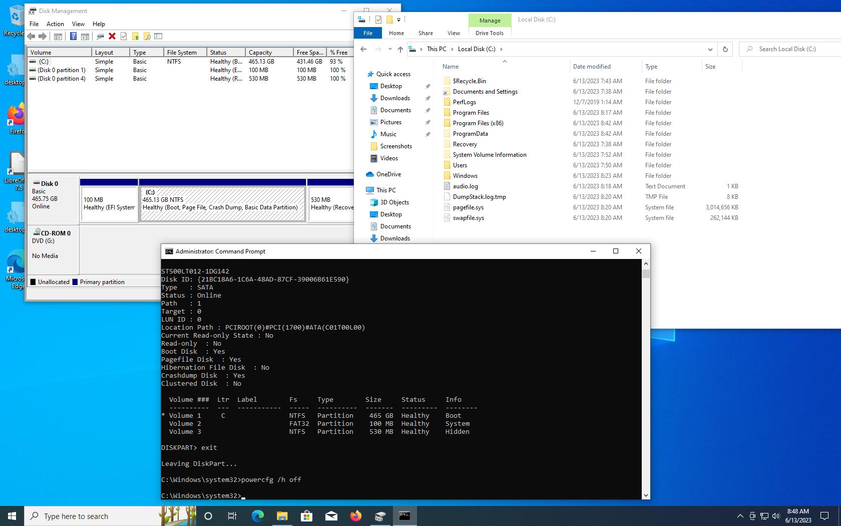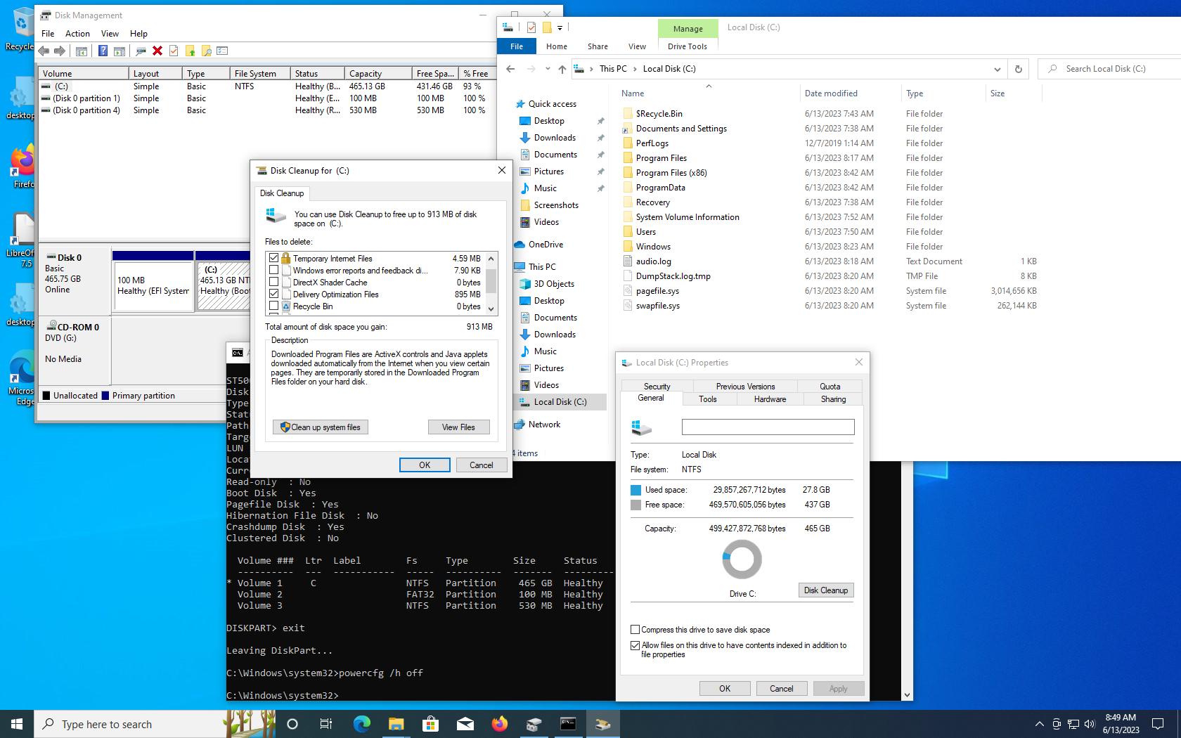 Se dezactiveaza hibernarea si se face Cleanup la partitia de windows