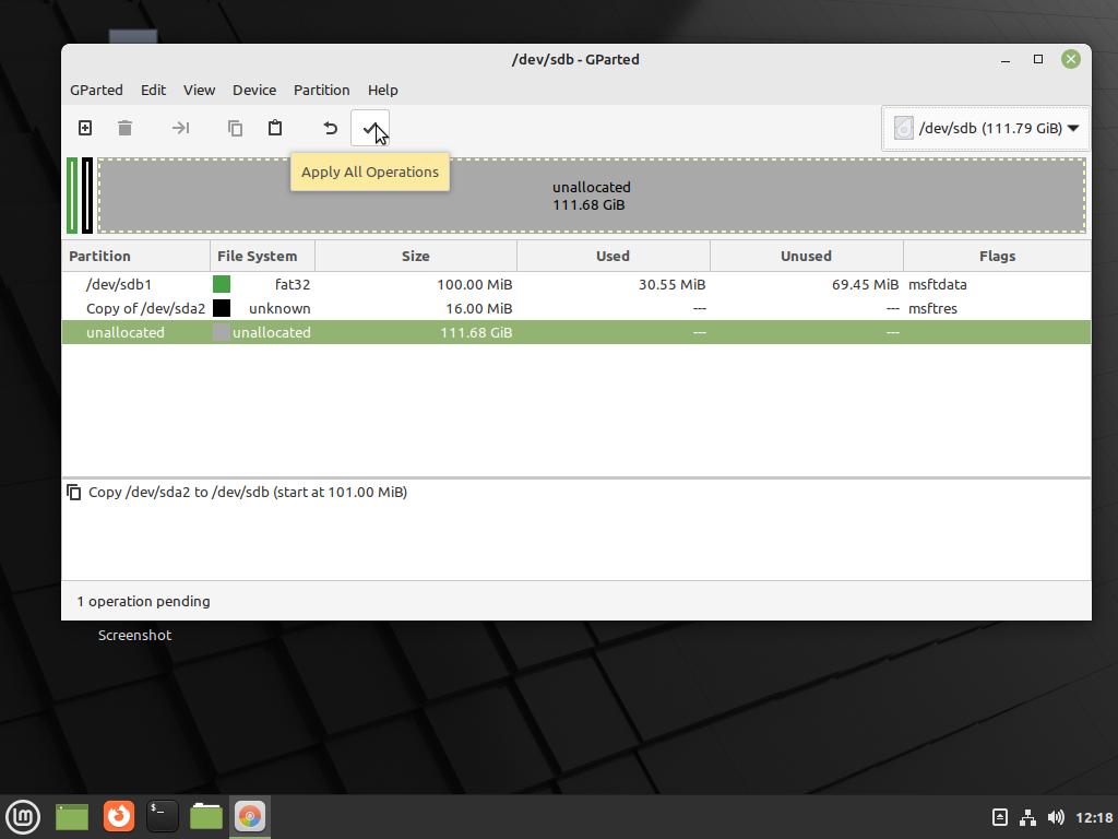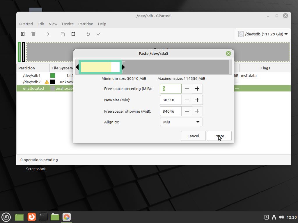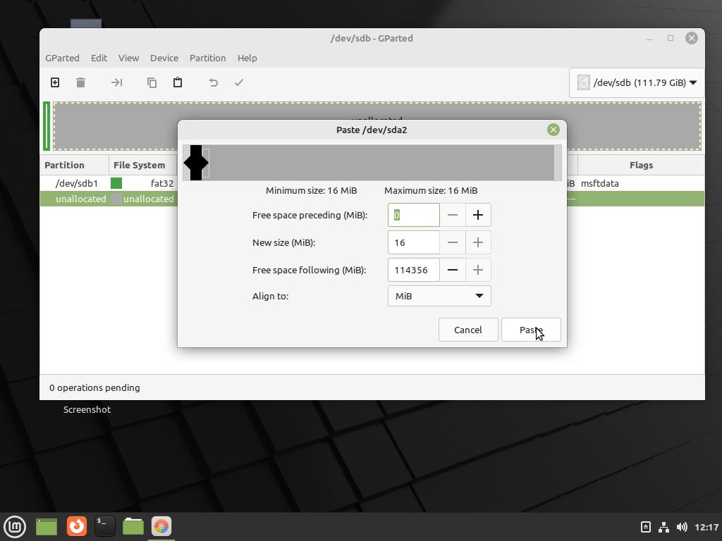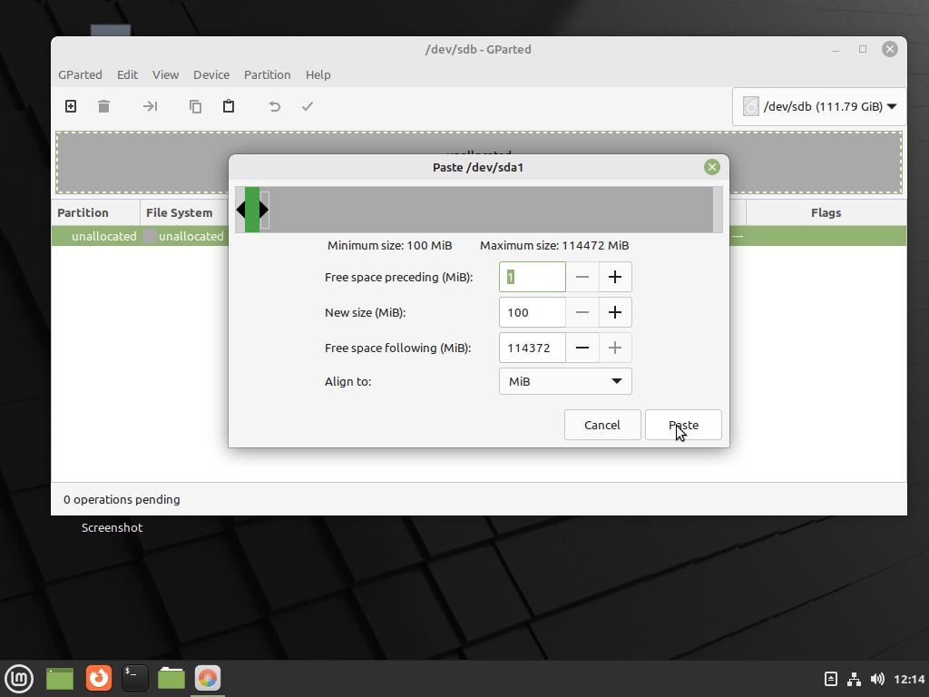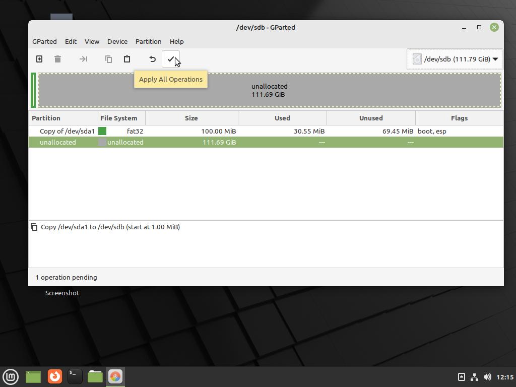 Se da shutdown, se scoate discul sursa si se booteaza din stick in Grub2
