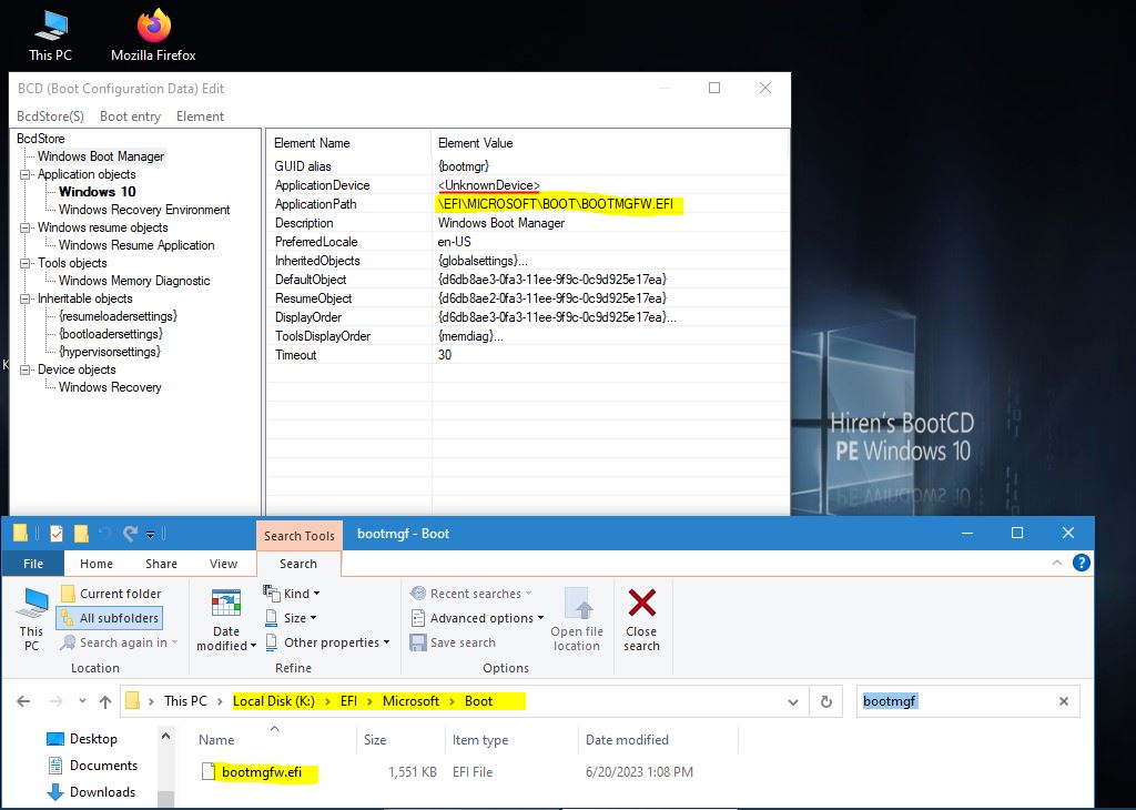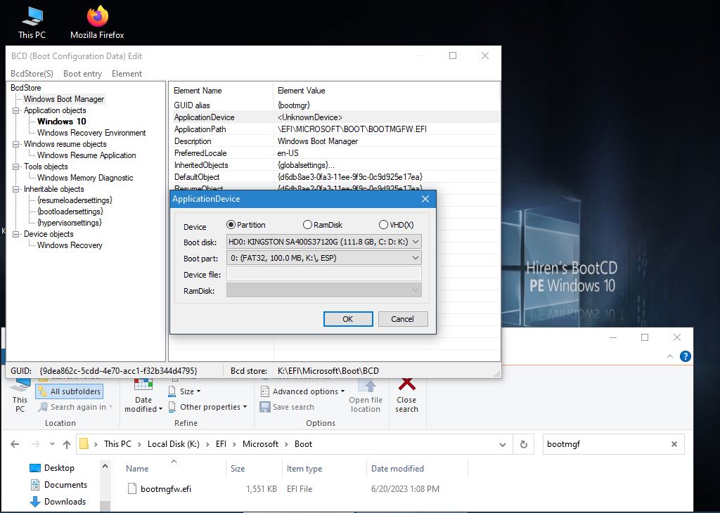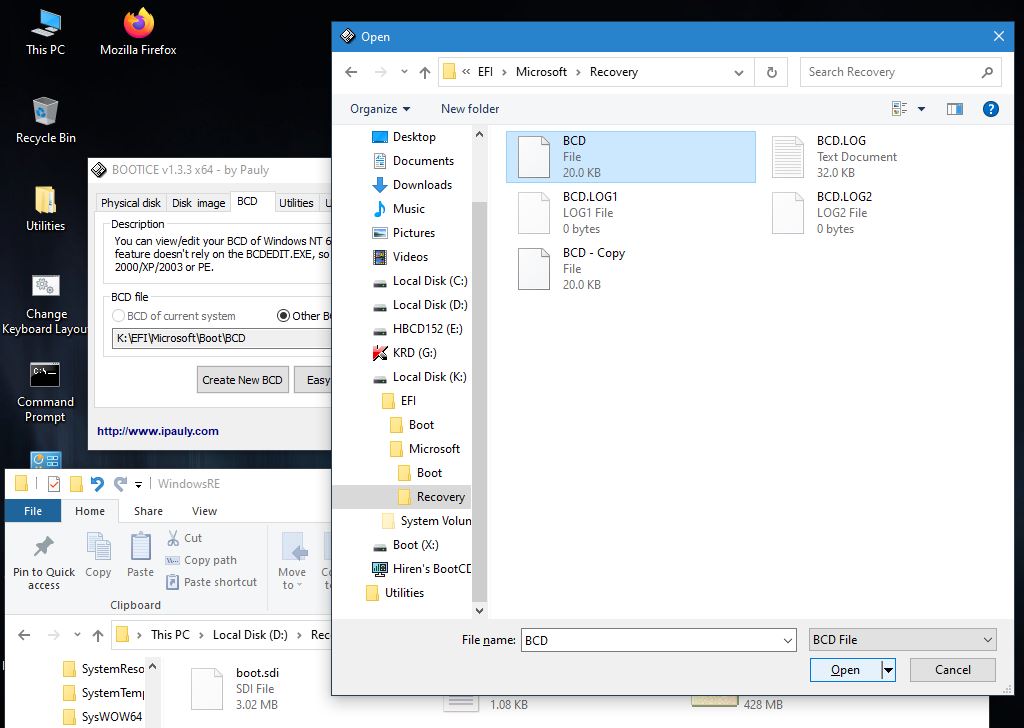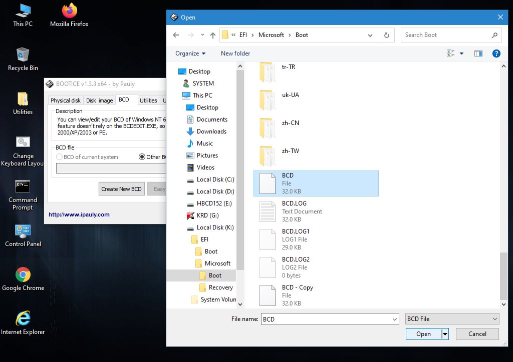 Fisierul BCD default e in partitia de boot in folderul EFI/Microsoft/Boot
