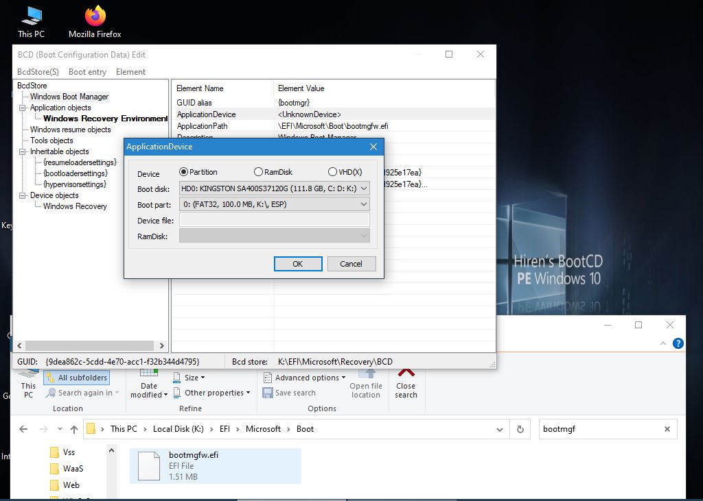 Se verifica fisierele si se corecteaza (dubluclick pe unknown) {bootmgr} la device