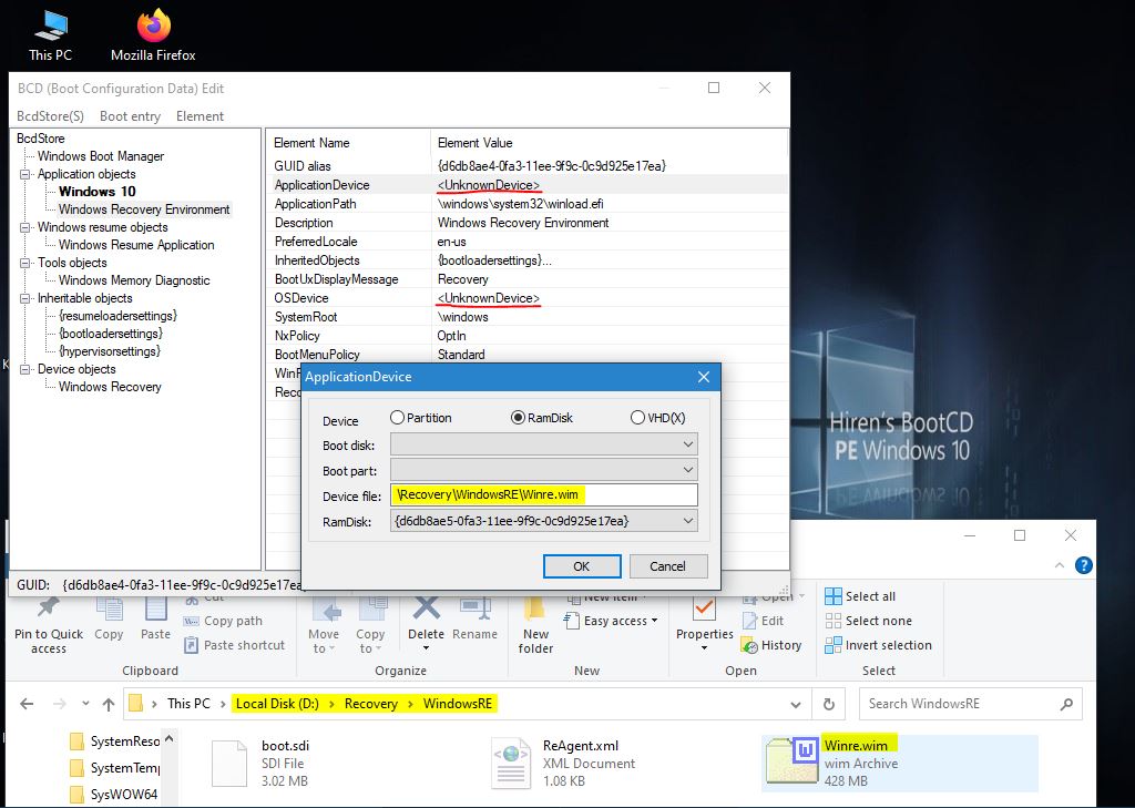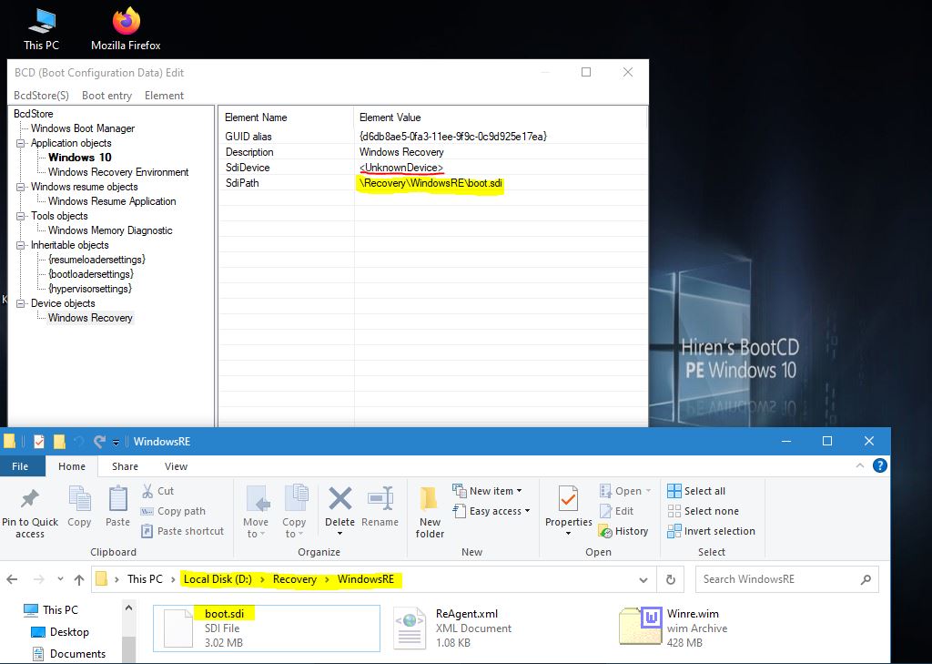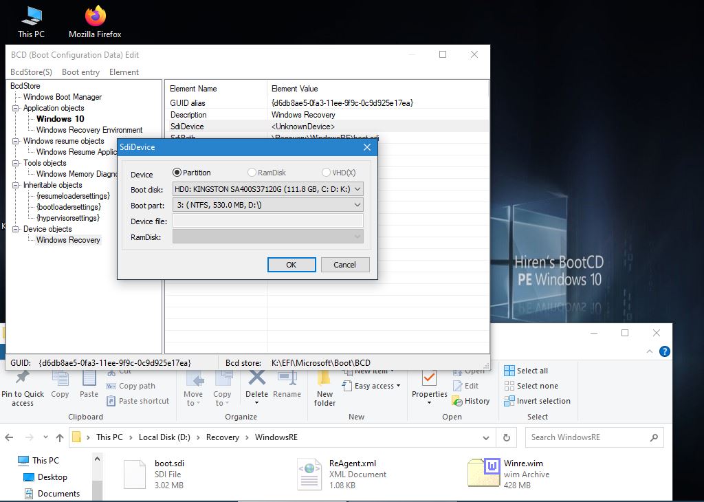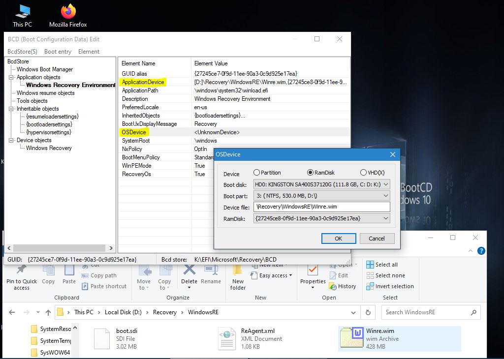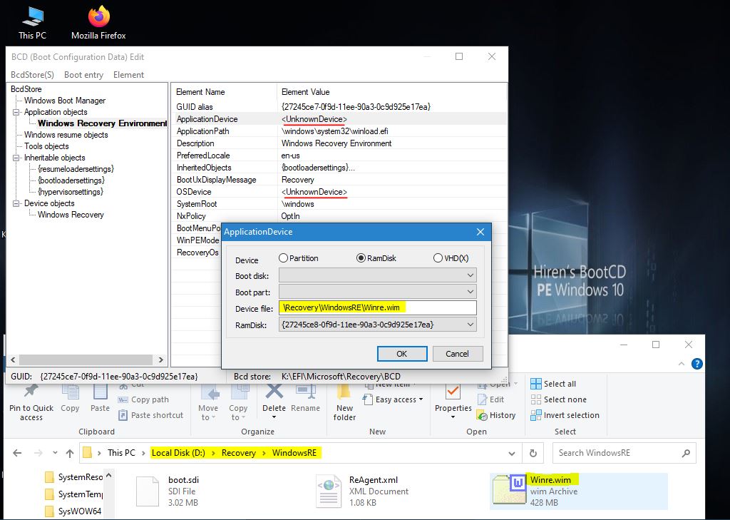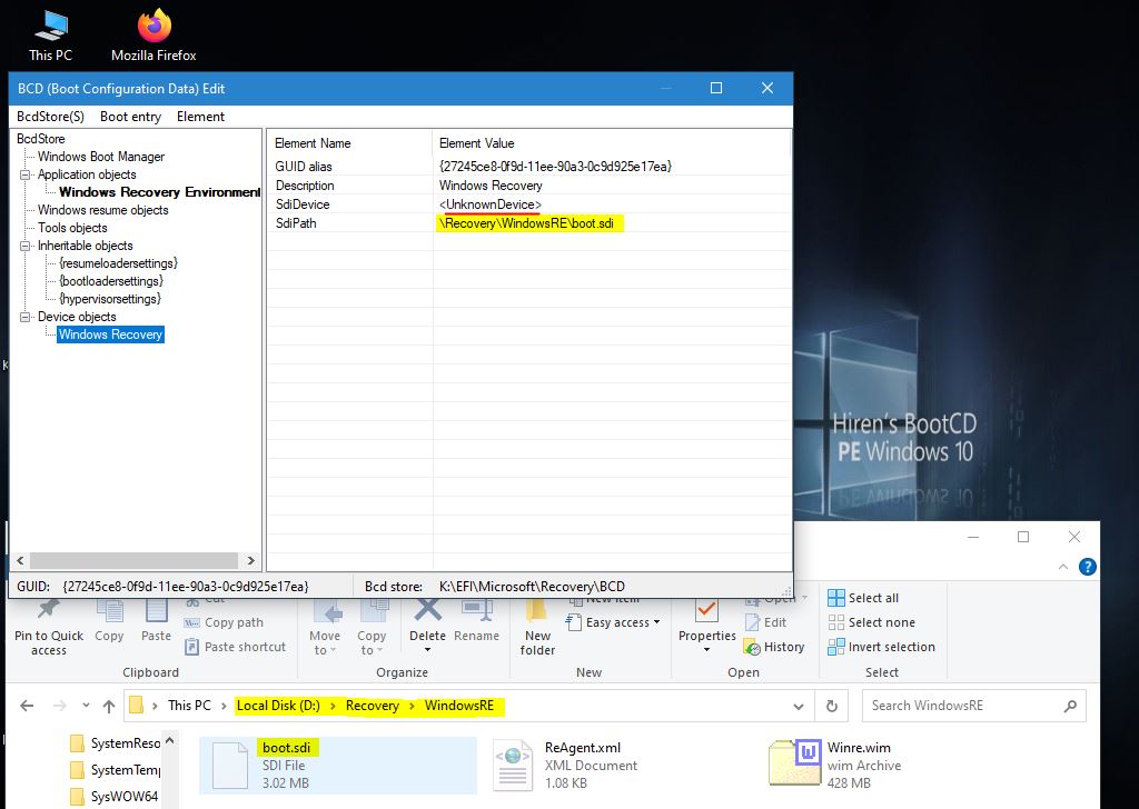 Fisierul BCD pentru recovery e in partitia de boot in folderul EFI/Microsoft/Recovery