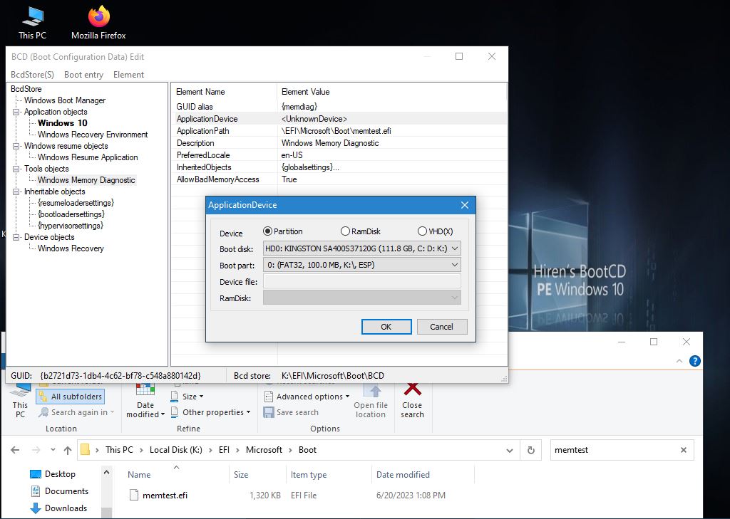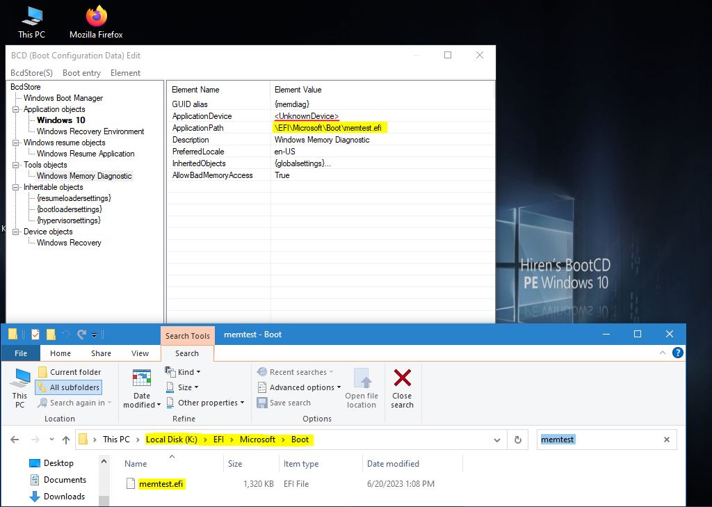 Se verifica fisierele si se corecteaza {memdiag} la device, tot suntem in explorer in partita de boot