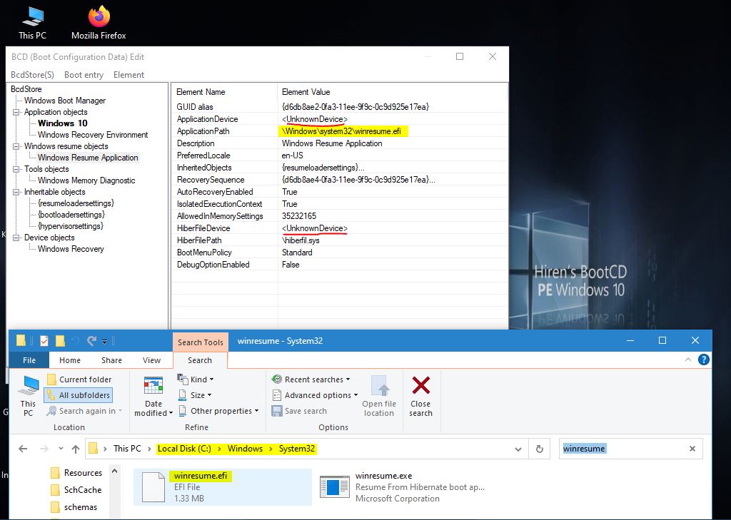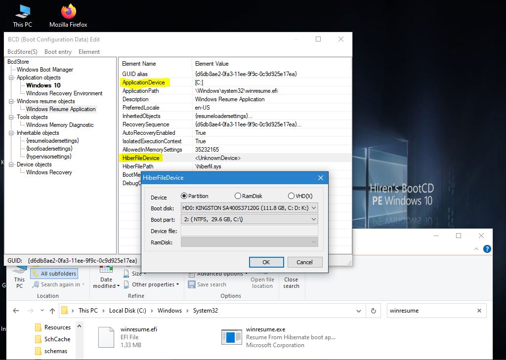 Se verifica fisierele si se corecteaza Resume la device si hibfiledevice, tot suntem in explorer in System32