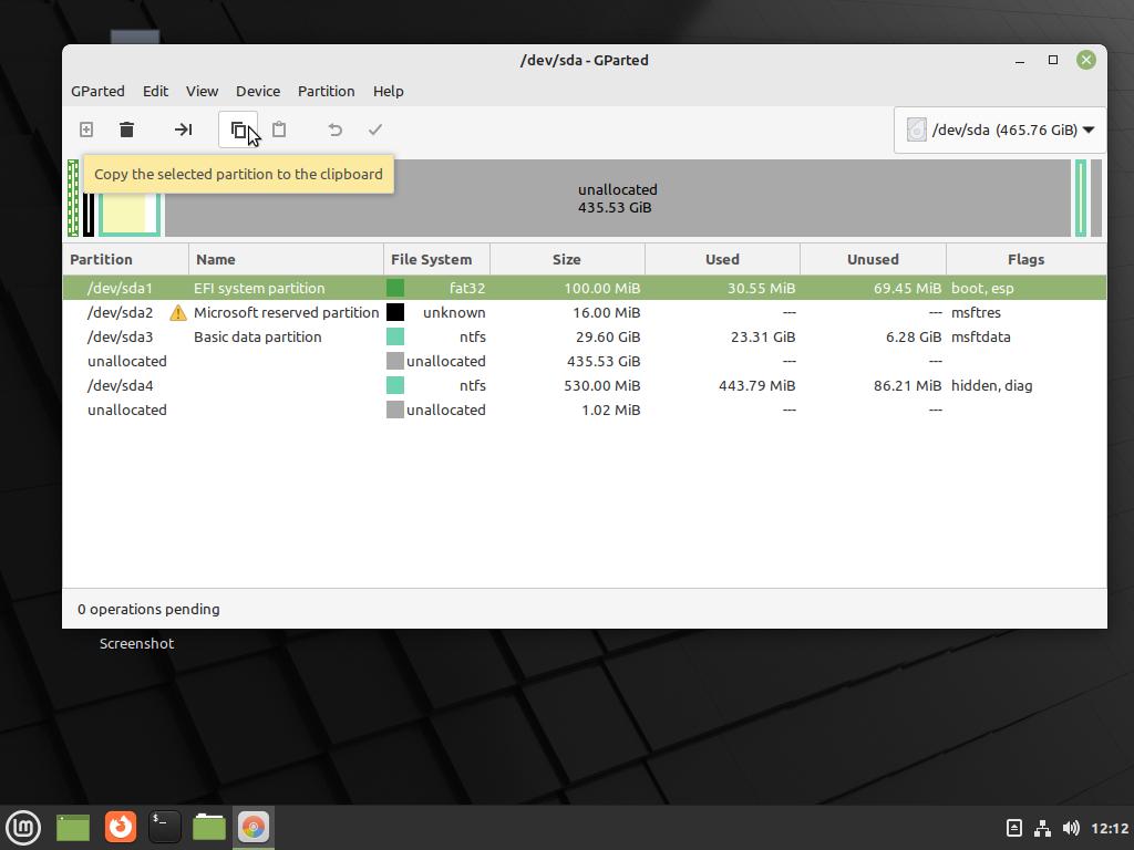 Clonare cu Gparted pentru windows instalat pe uefi: