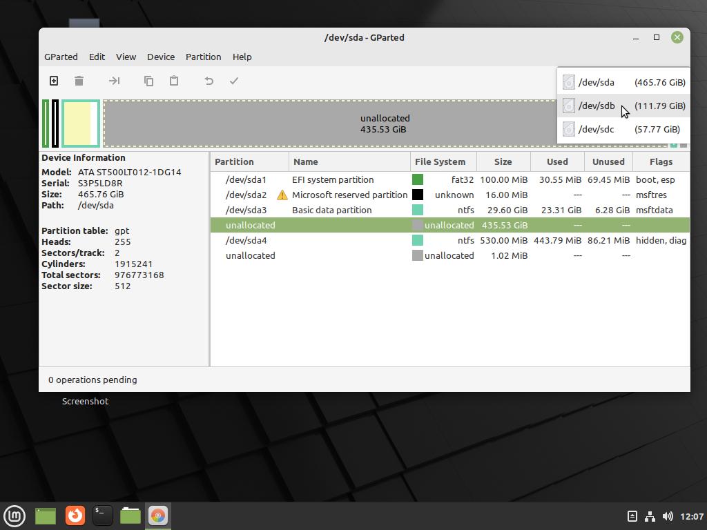 La pornire se deschide automat pe primul disc (sda), se selecteaza discul sursa (hdd-ul)