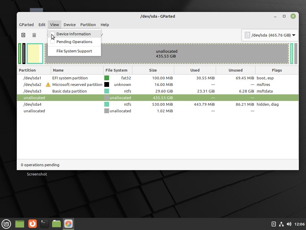Se identifica tipul de partition table al discului sursa, se pune bifa la view device information
