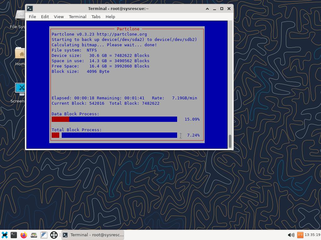 Clonezilla e inclus in SystemRescue 10, se poate descara si varianta
