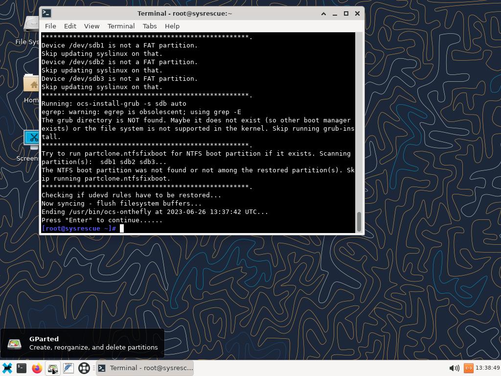 Se cloneaza bootloader-ul si apoi vor afisa fereste de status pentru fiecare partitie