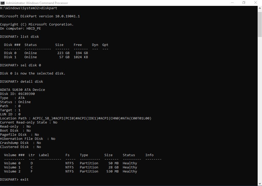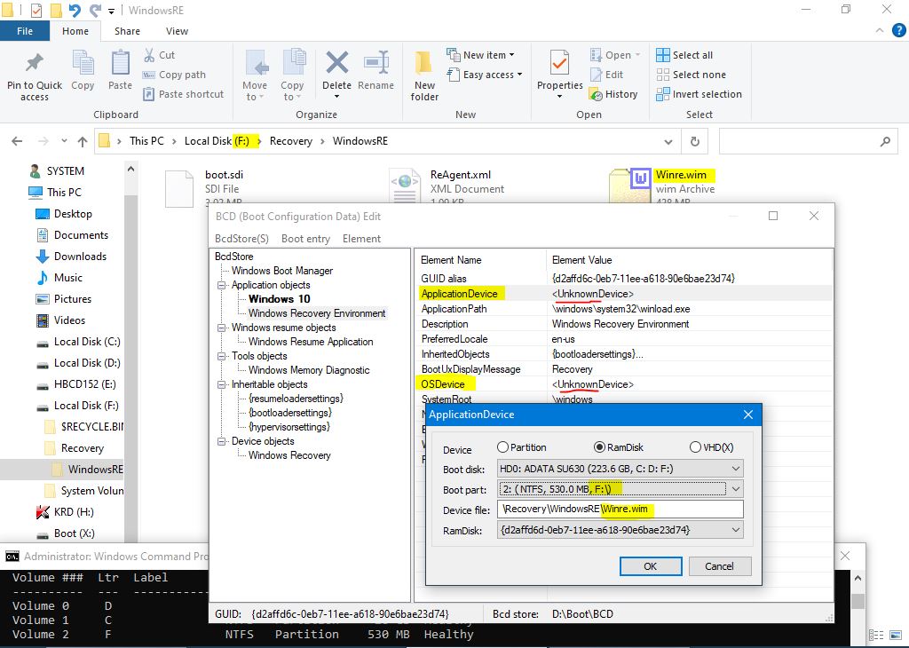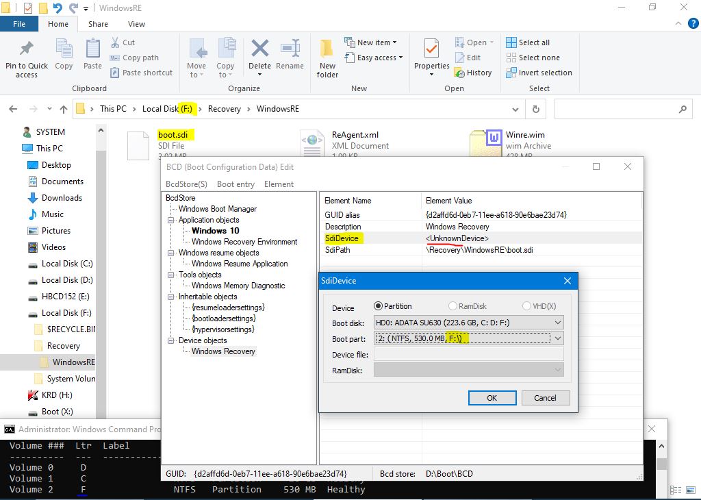 Se corecteaza boot.sdi si recovery din Unknown in partitia de recovery