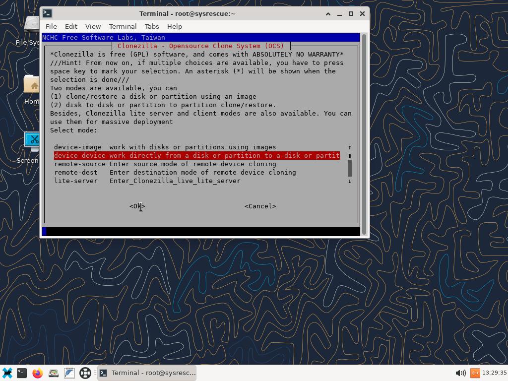 Clonare cu Clonezilla disk-to-disk pentru pcbios sau uefi csm mode