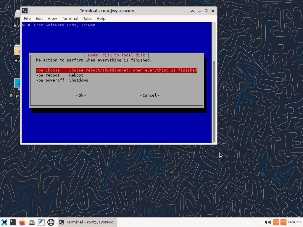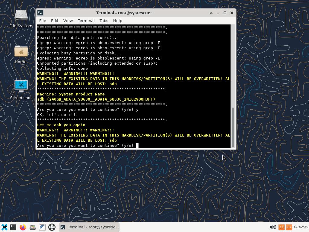 Se alege actiunea dupa clonare si se raspund cu Y la urmatoarele warning-uri in caz ca esti sigur de discul target