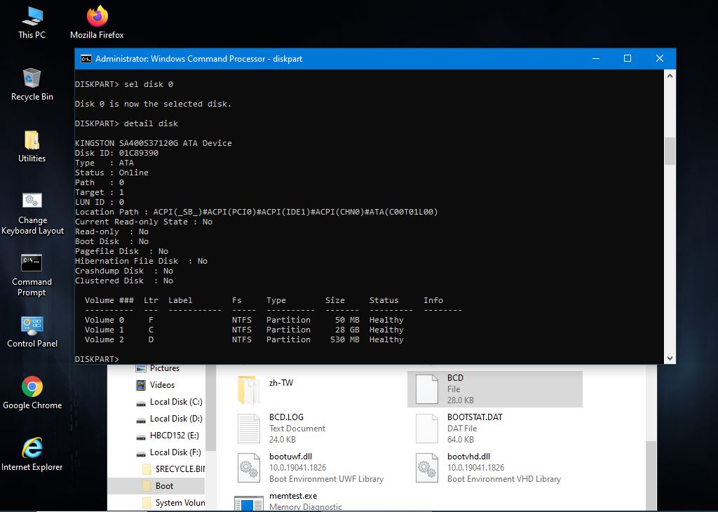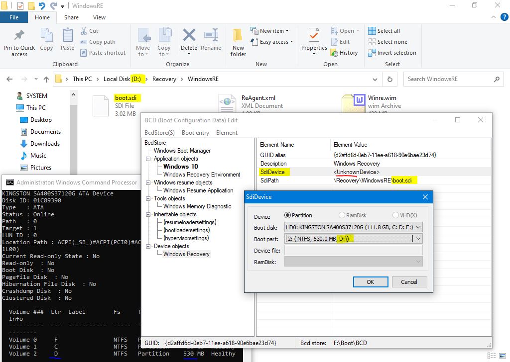 Se corecteaza boot.sdi si Recovery din UnknownDevice in litera partitiei de recovery D: