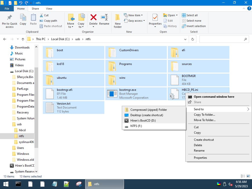 se selecteaza continutul folderului ntfs si se copiaza in partitia 2 NTFS(E:) iar in final va fi
