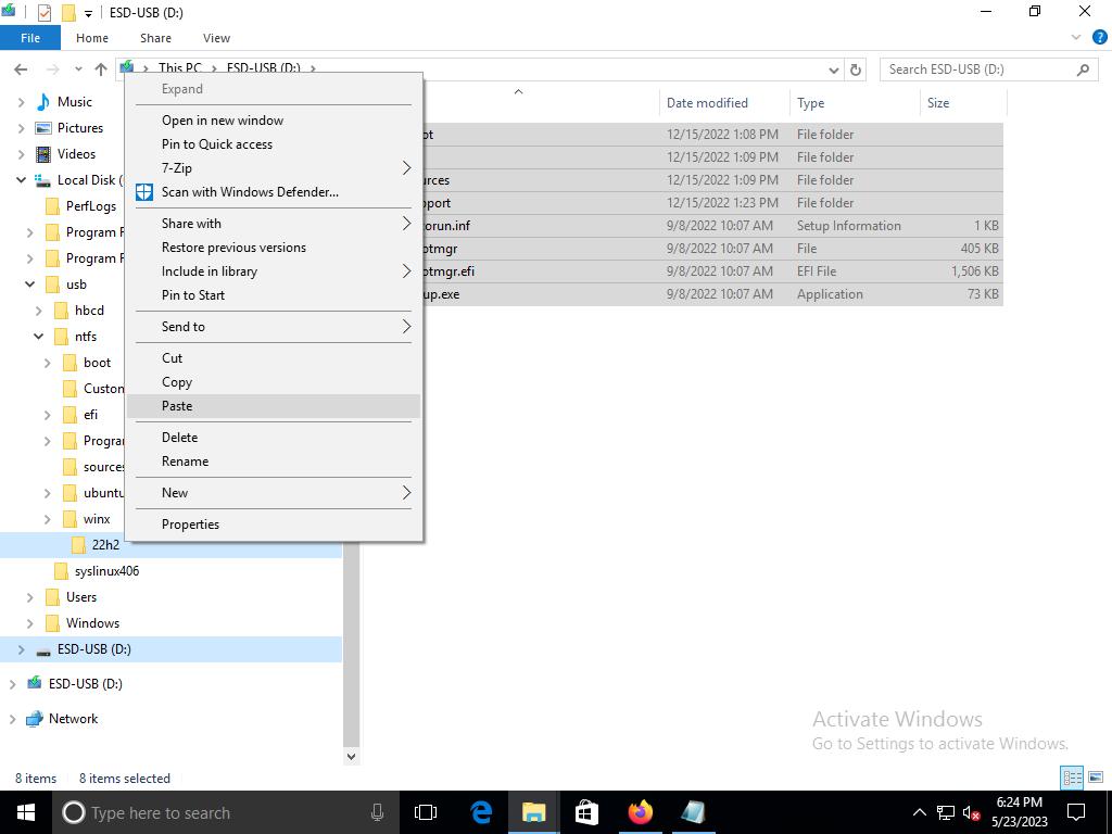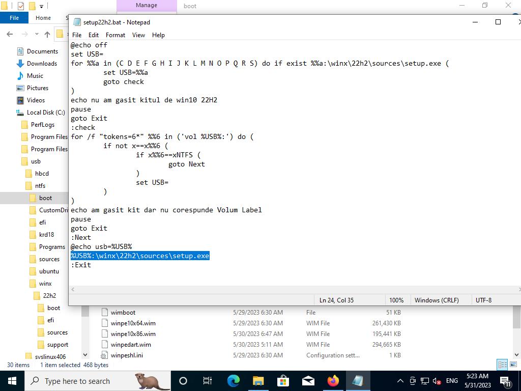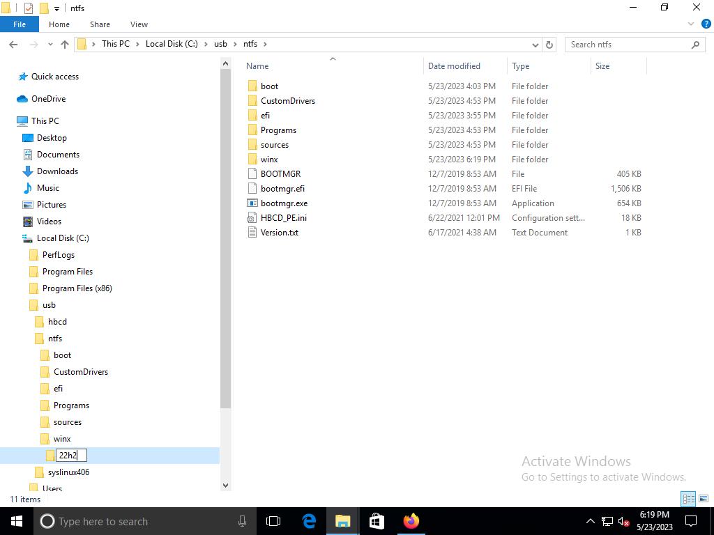 se face folderul winx cu subfolderul 22h2 in ntfs si se copiaza continutul stick-ului in 22h2