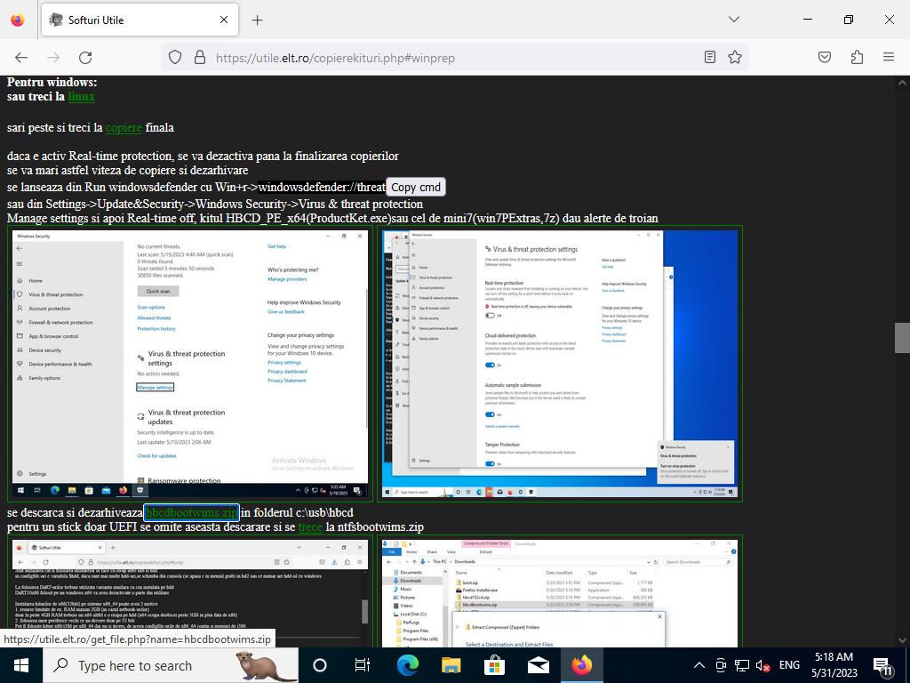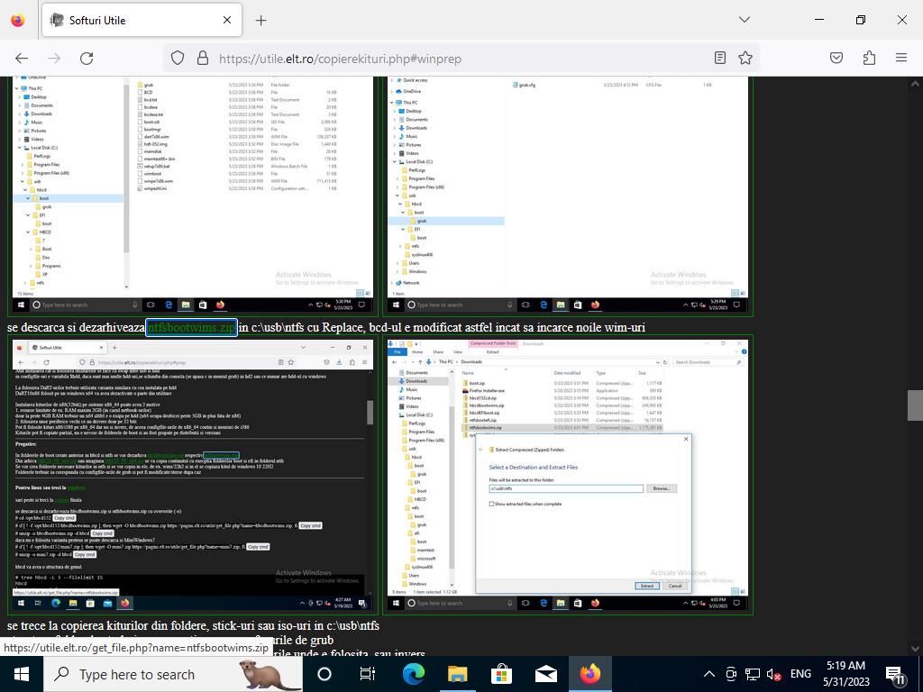 Arhivele hbcdbootwims.zip si ntfsbootwims.zip contin winpe-urile si fisierele folosite la instalari