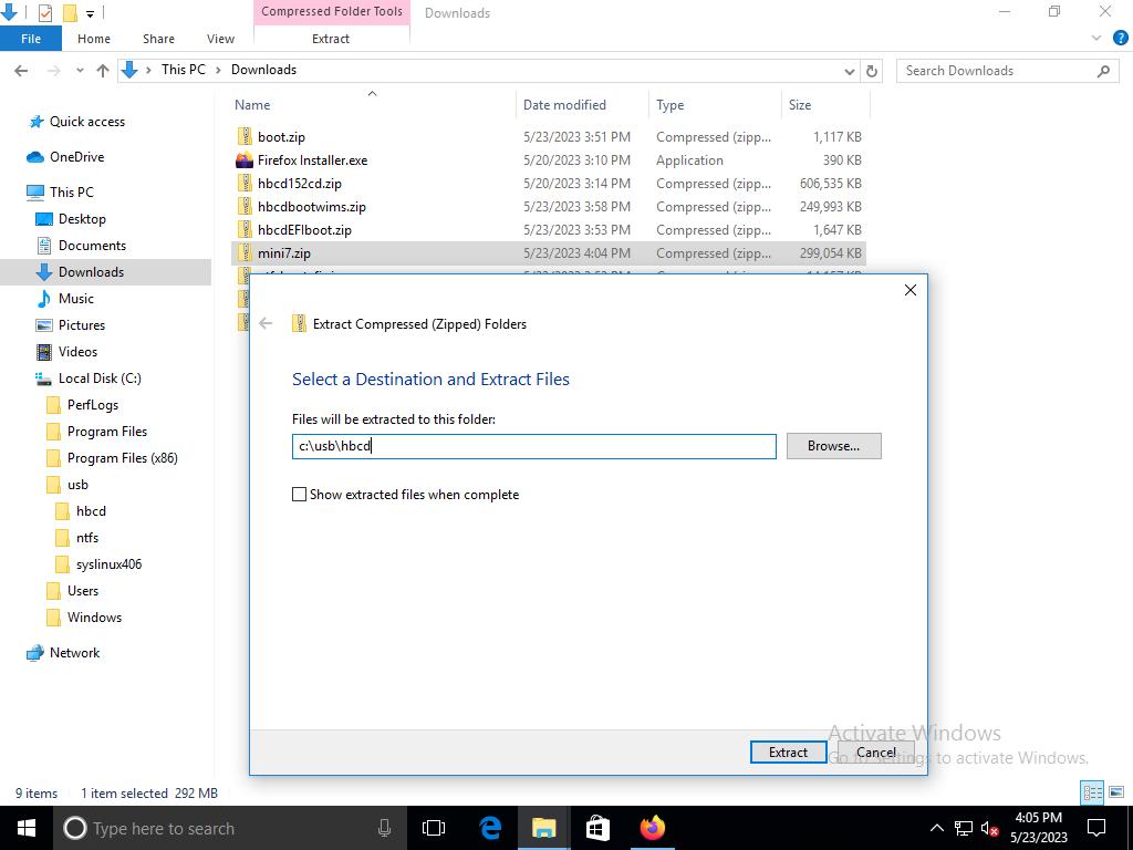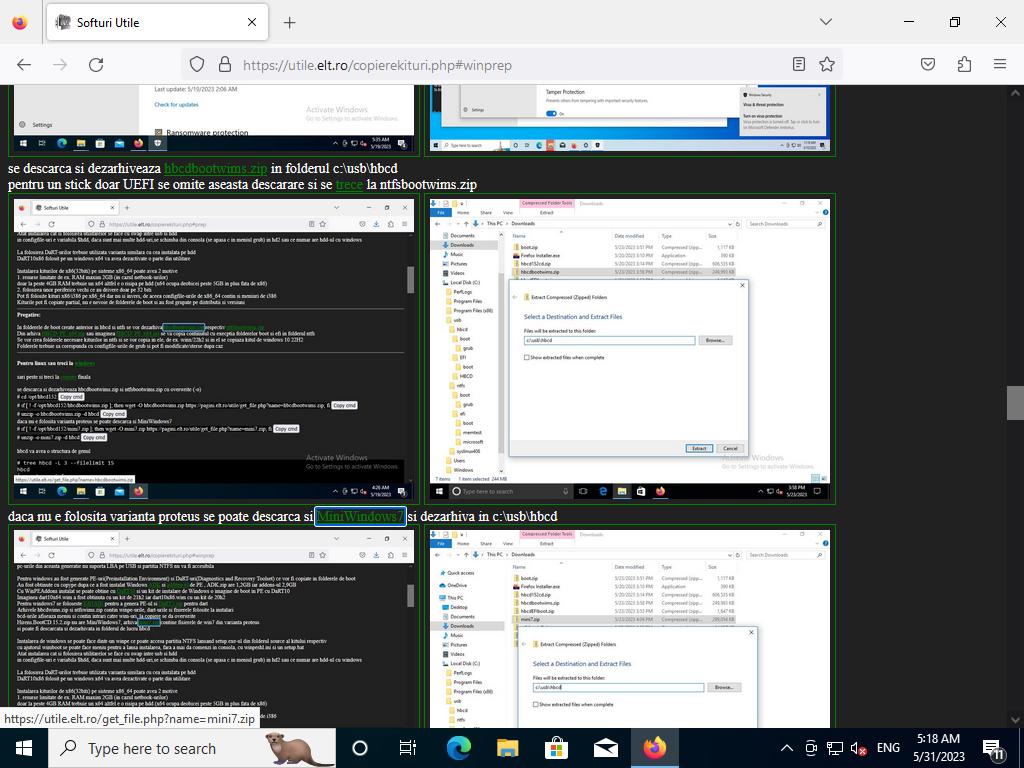 MiniWindows7 si dezarhiva in c:\usb\hbcd