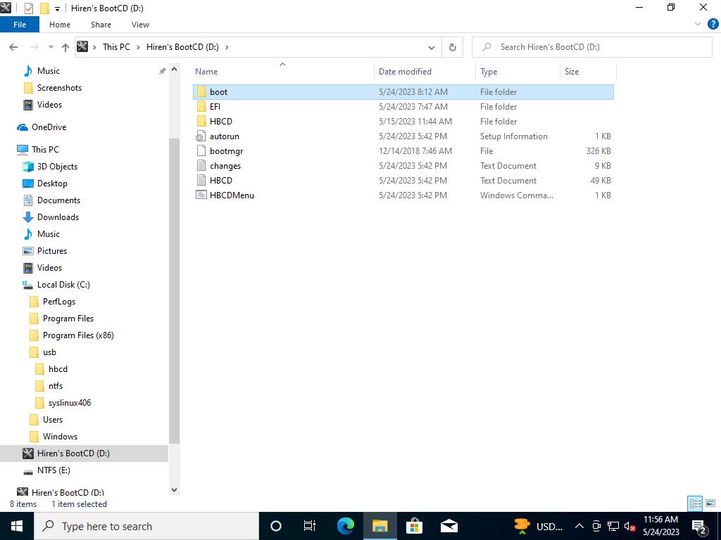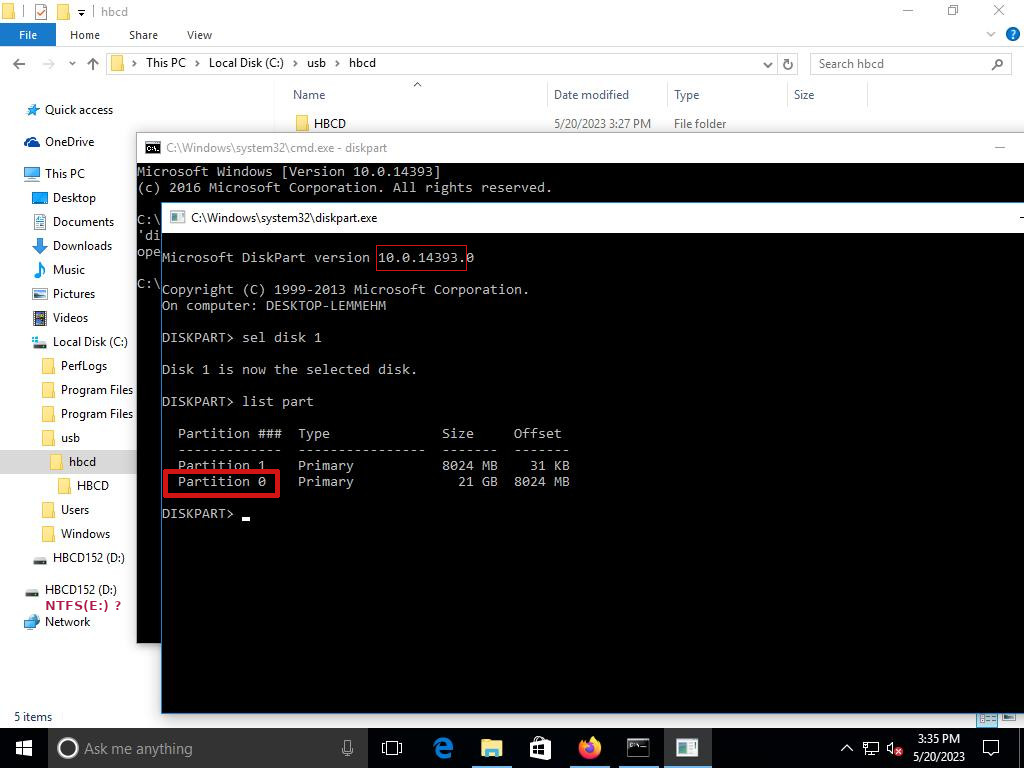 Pentru o interventie/modificare cat mai mica asupra kiturilor HBCD, varianta x64 a fost copiata in partitia ntfs