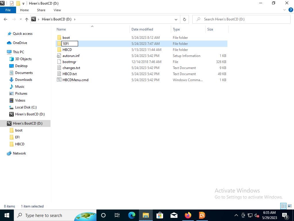 Dupa copiere, restart, sters folderele sources si efi din HBCD152 apoi redenumit 1EFI in EFI