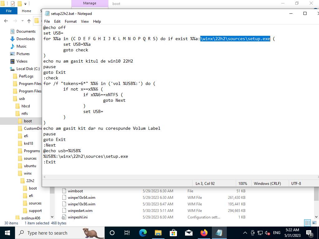 Se vor crea folderele necesare kiturilor in ntfs si se vor copia in ele, de ex. winx/22h2 si in el se copiaza kitul de windows 10 22H2