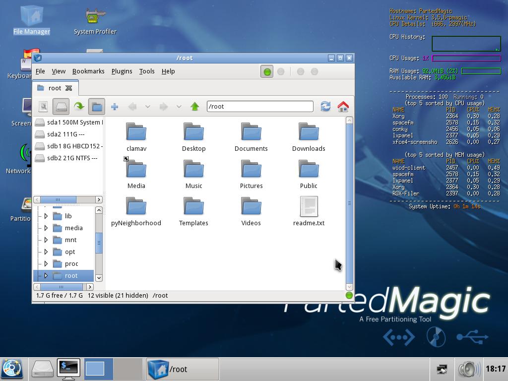 se intra in Linux din meniuri si in PartedMagic apoi in File Manager