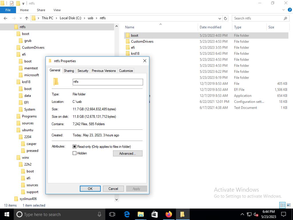 odata finalizata copierea kiturilor, se verifica dimensiunea folderului ntfs, sa incapa in partita NTFS pe stick