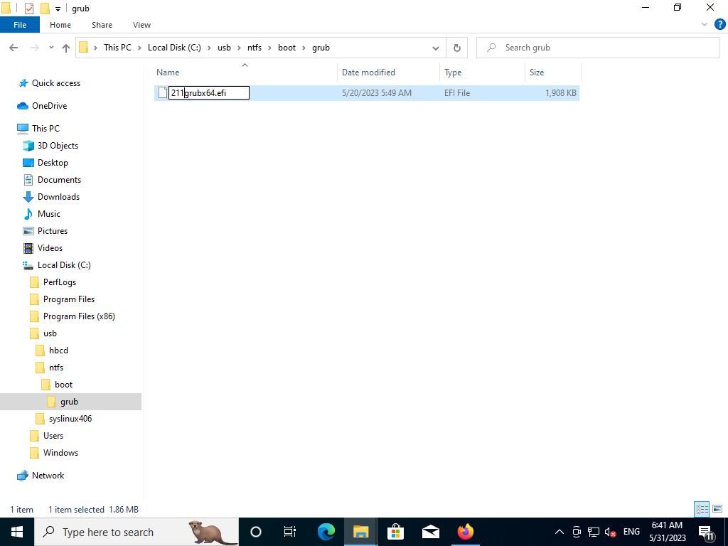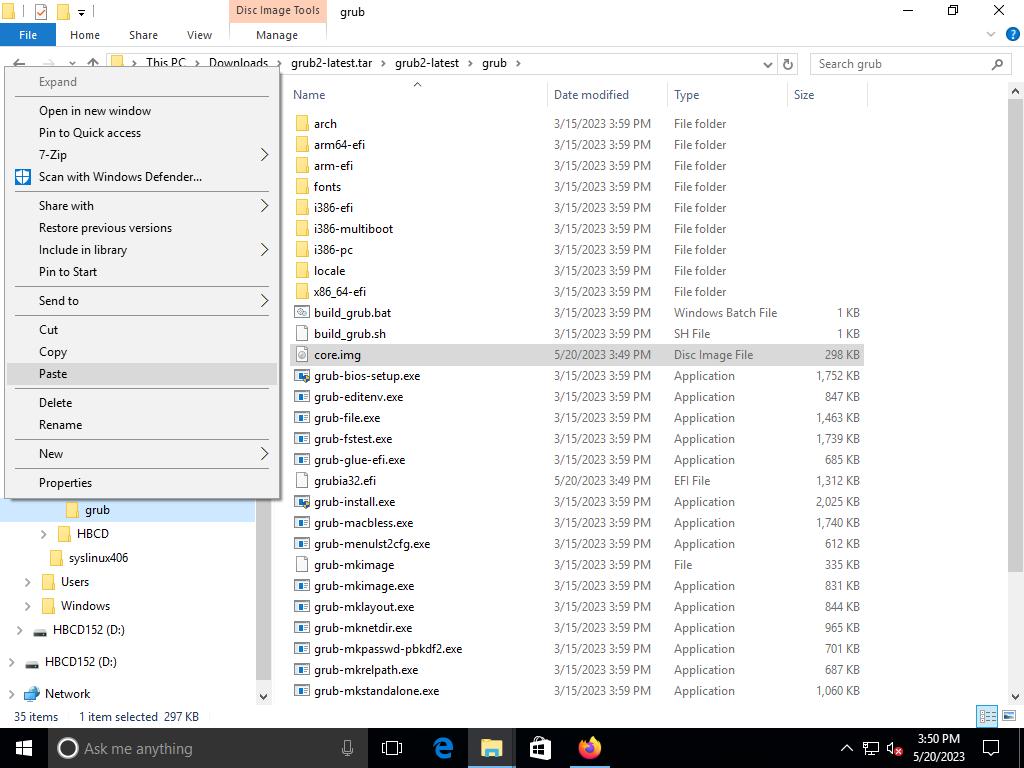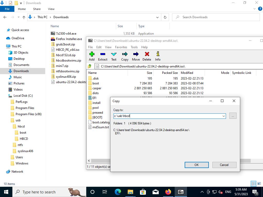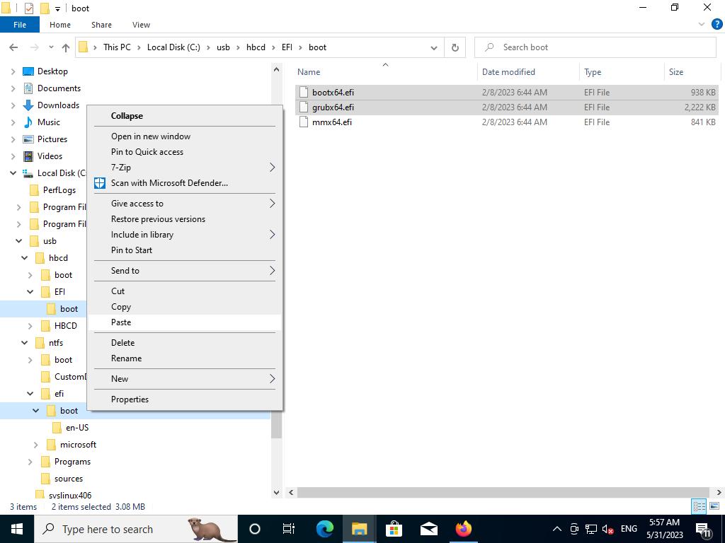 Se monteaza iso-ul si se copiaza din EFI/boot fisierele bootx64.efi si grubx64.efi in folderul EFI/boot din hbcd