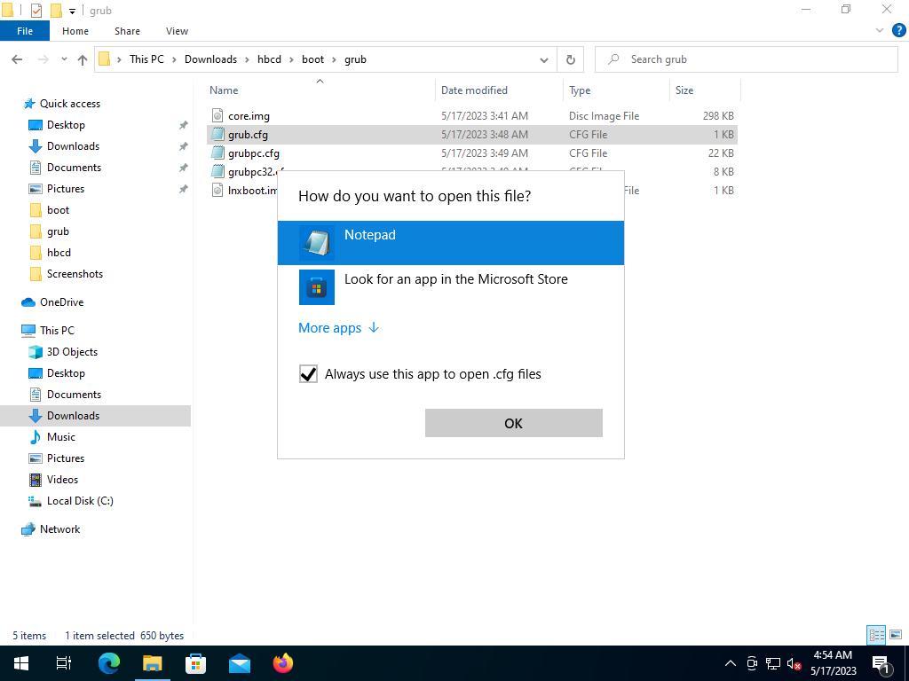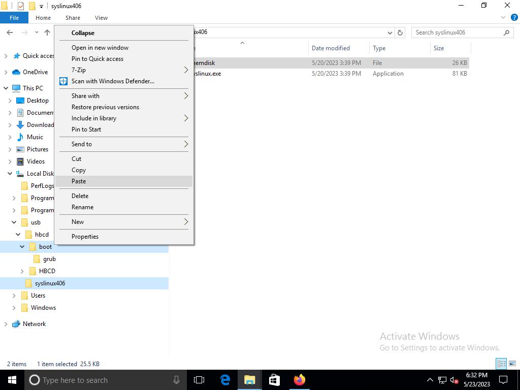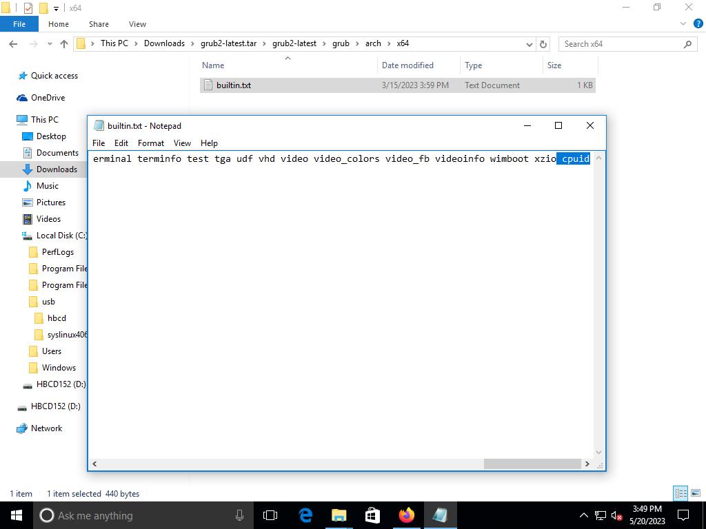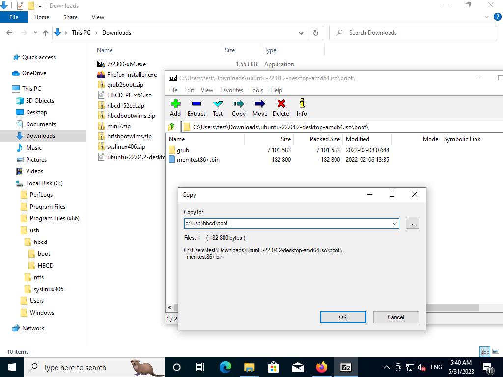 Se monteaza iso-ul si se copiaza din EFI/boot fisierele bootx64.efi si grubx64.efi in folderul EFI/boot din hbcd