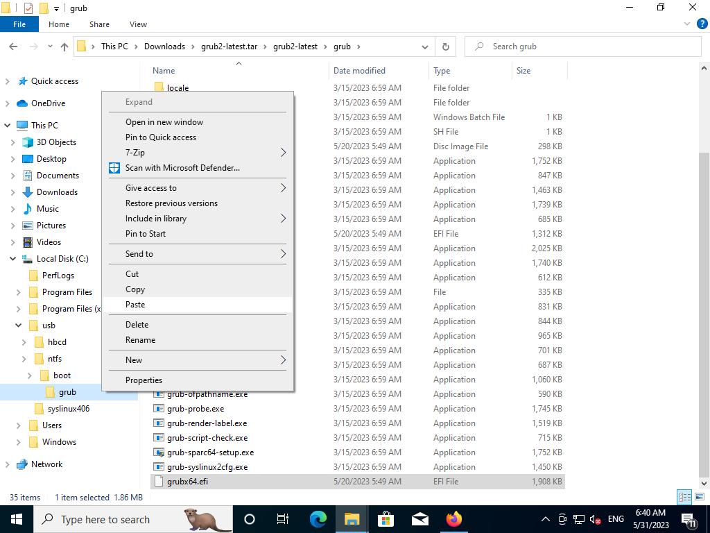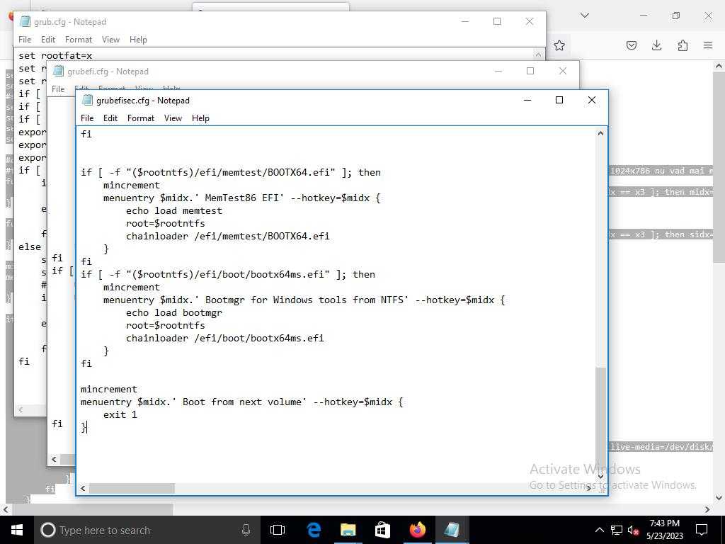 Astfel vor fi 3 fisiere de grub: unul de pcbios si 2 de uefi ,cel generat si cel semnat