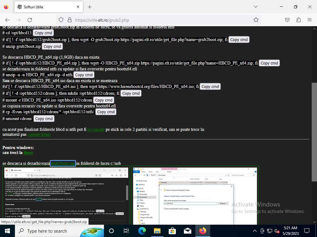 Procedura prin care s-au obtinut fisierele din grub2boot.zip: