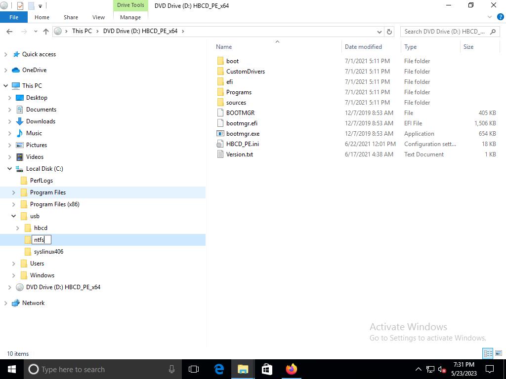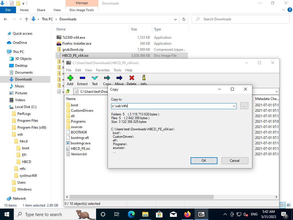 Se va copia Hiren’s BootCD PE x64 in folderul ntfs, cu exceptia bootx64.efi, se va da skip