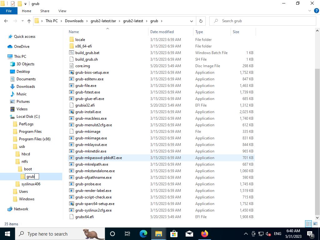 Trebuie generate core-urile pentru i386-pc respectiv x86_64-efi, in folderul dezarhivat sunt scripturile build_grub pentru linux respectiv windows