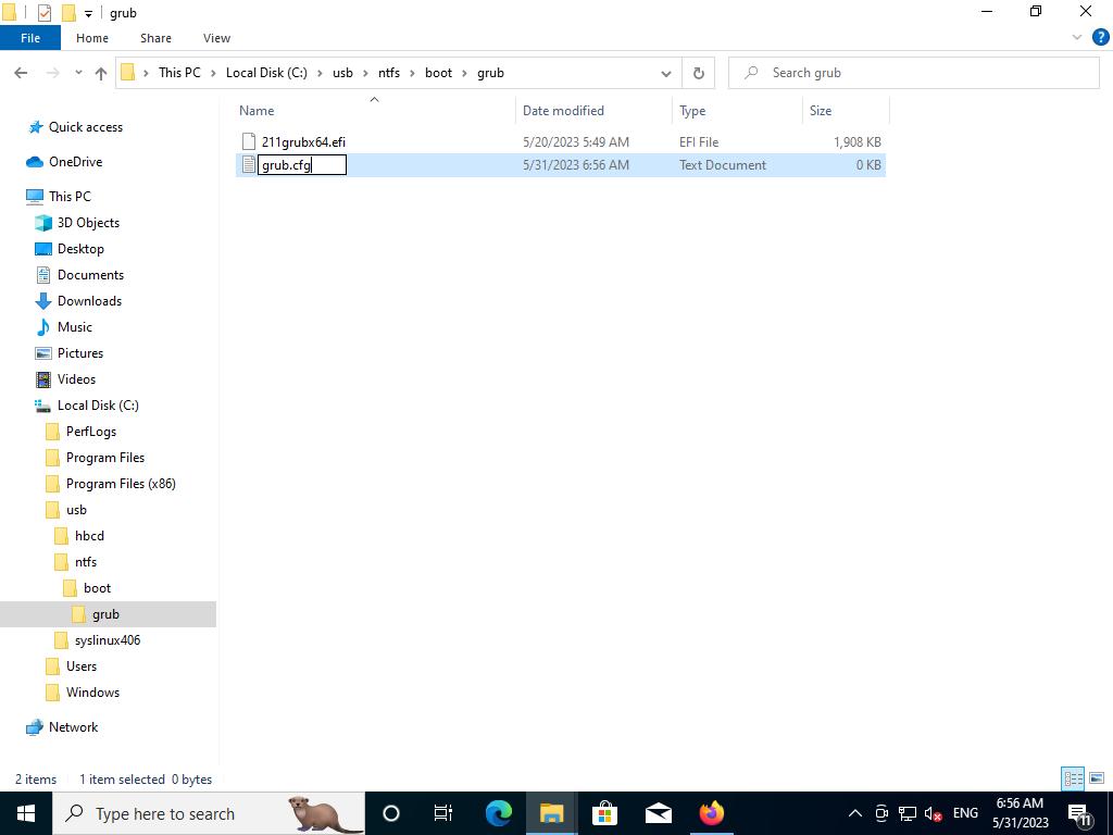 Configfile-urile pentru efi si grub-ul generat (va fi redenumit pentru a nu fi confundat la copieri) vor fi in /boot/grub-ul din NTFS
