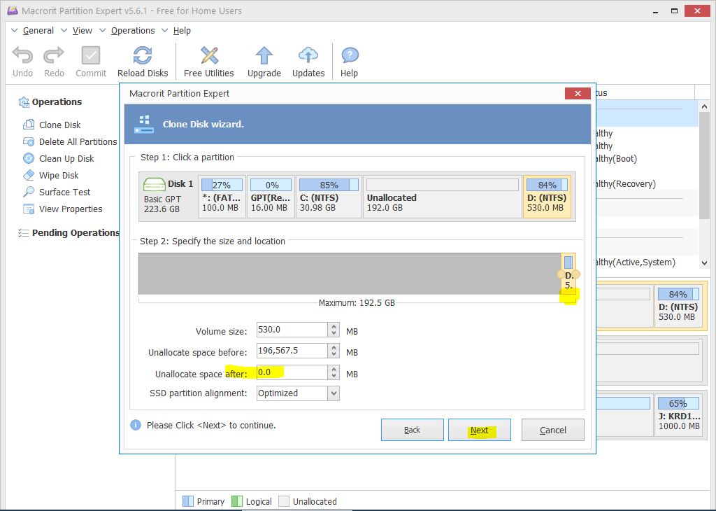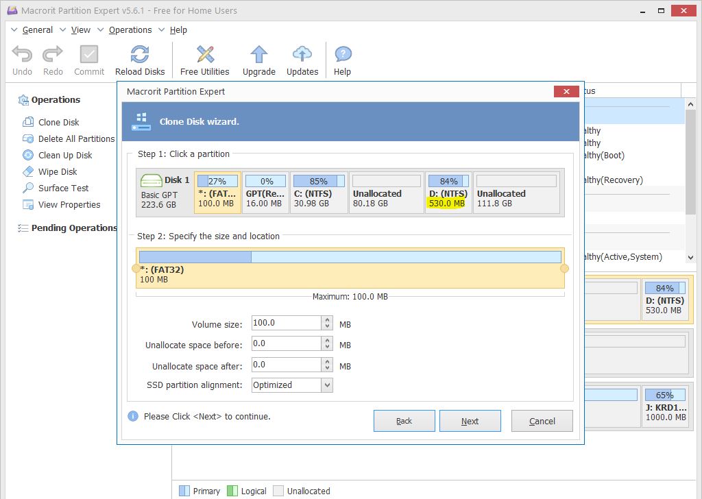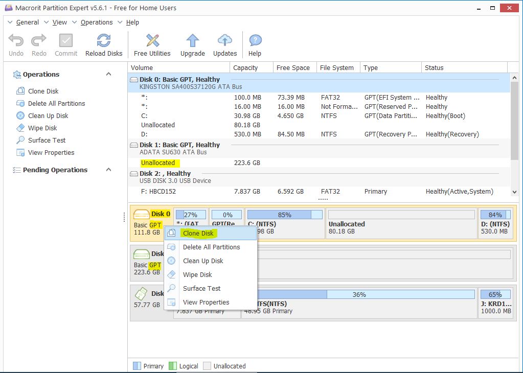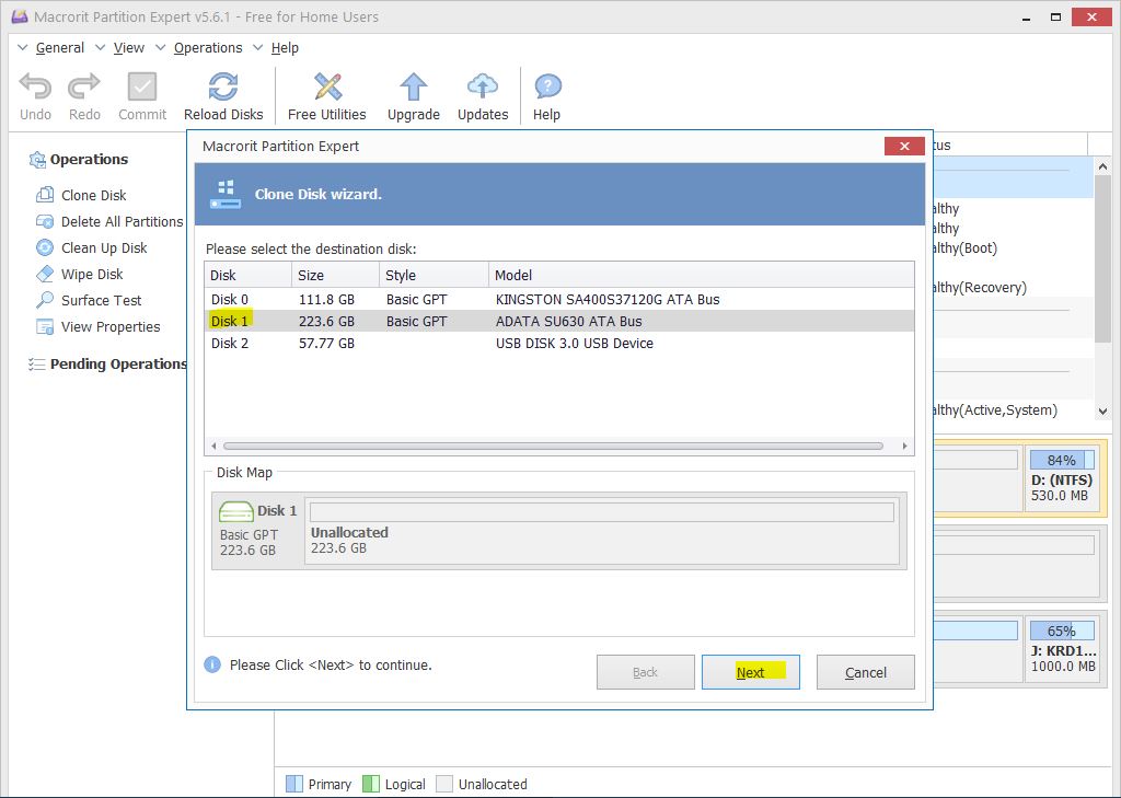 Clonare cu Macrorit upgrade disk-to-disk pentru uefi