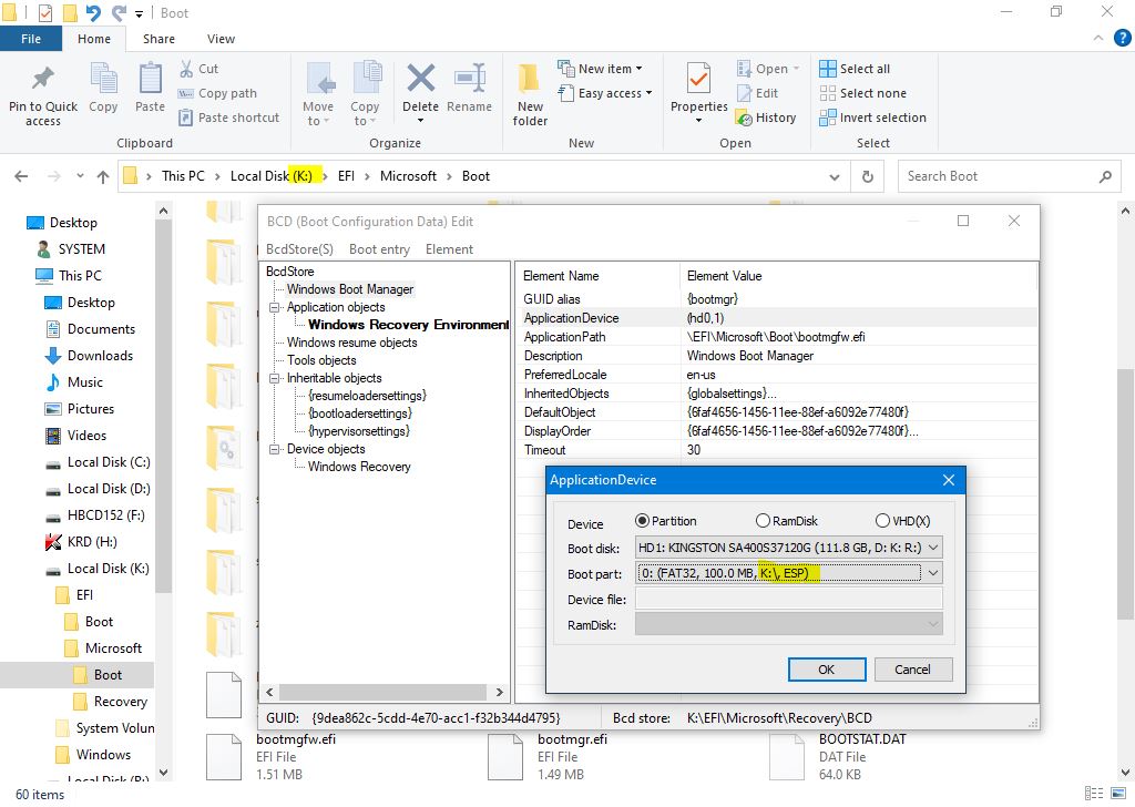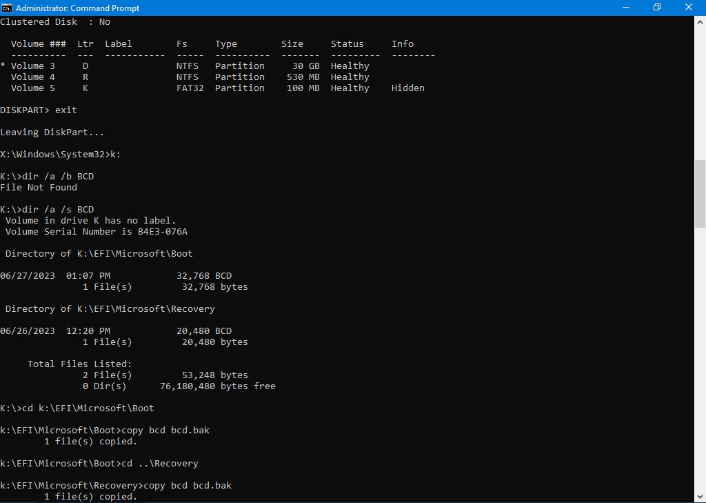 Ajustare: Dupa clonare se corecteaza BCD-ul de recovery