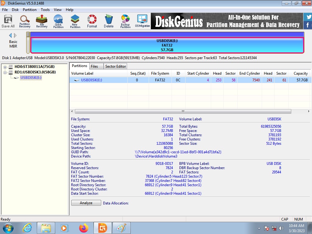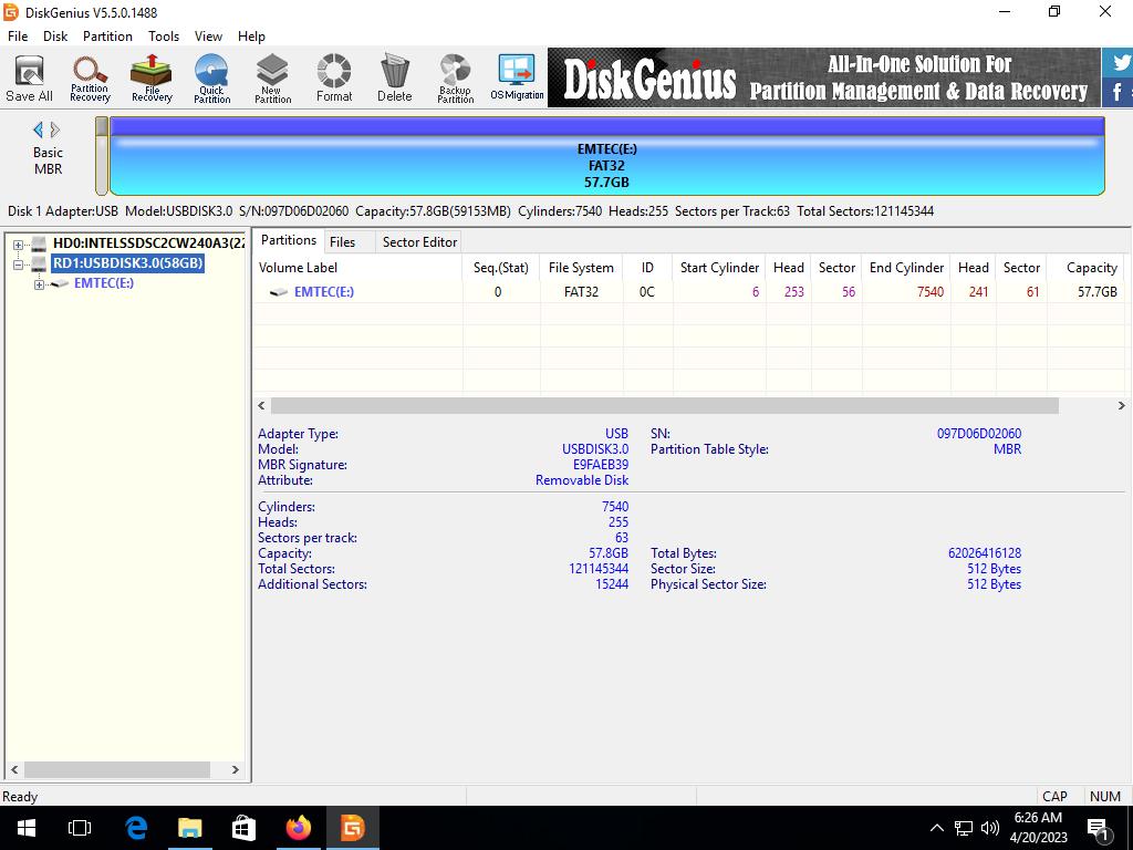 e formatat FAT32 iar partitia incepe la CHS 4/253/58 respectiv 6/253/56